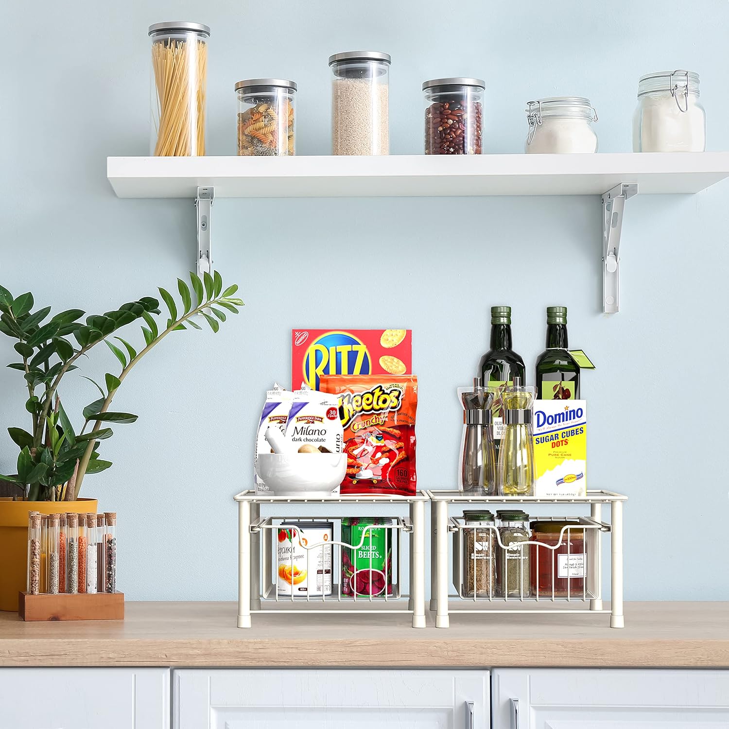 - Sliding basket for easy access in limit space and stackable design (Buy two sets and stack them together)