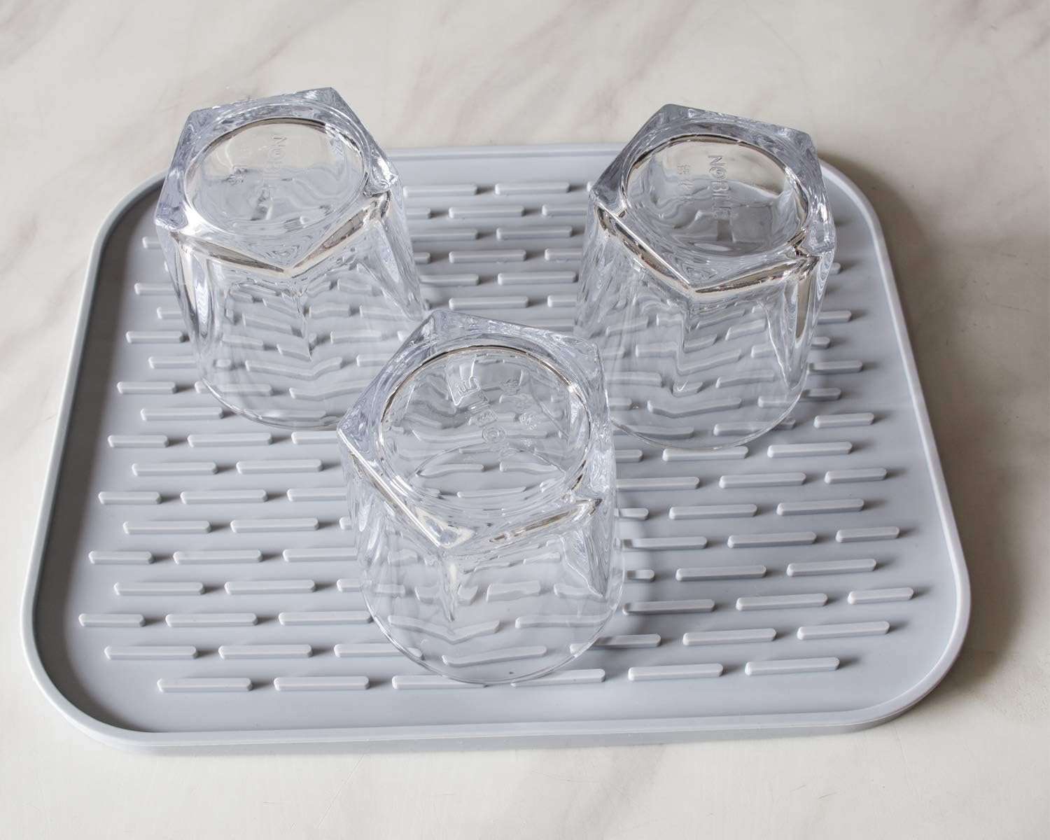 Silicone Dish Drying Mat for Multiple Usage,Easy clean,Eco-friendly,Super Sturdy Silicone Dish Drying Mat and Trivet, Dishwasher Safe, Heat Resistant (Gray, S 11.6×9.3inch)