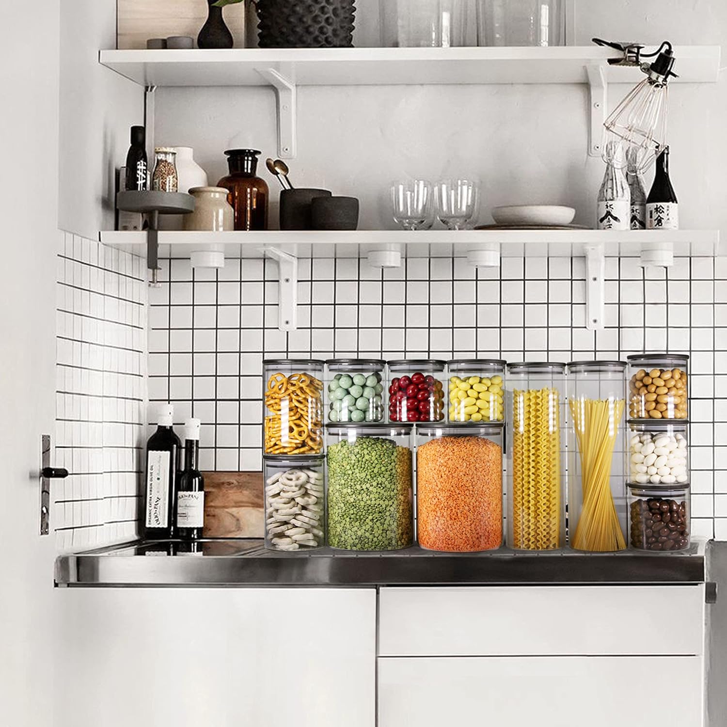 - β MULTIPLE PURPOSE OF USE: These air-tight kitchen canisters are specially designed in different heights and quantity pack combo for multiple purpose of use. All of them are stackable for space saving storage, the silicone ring makes the bamboo lid close tightly, which ensures inside food dry and fresh for much longer time.