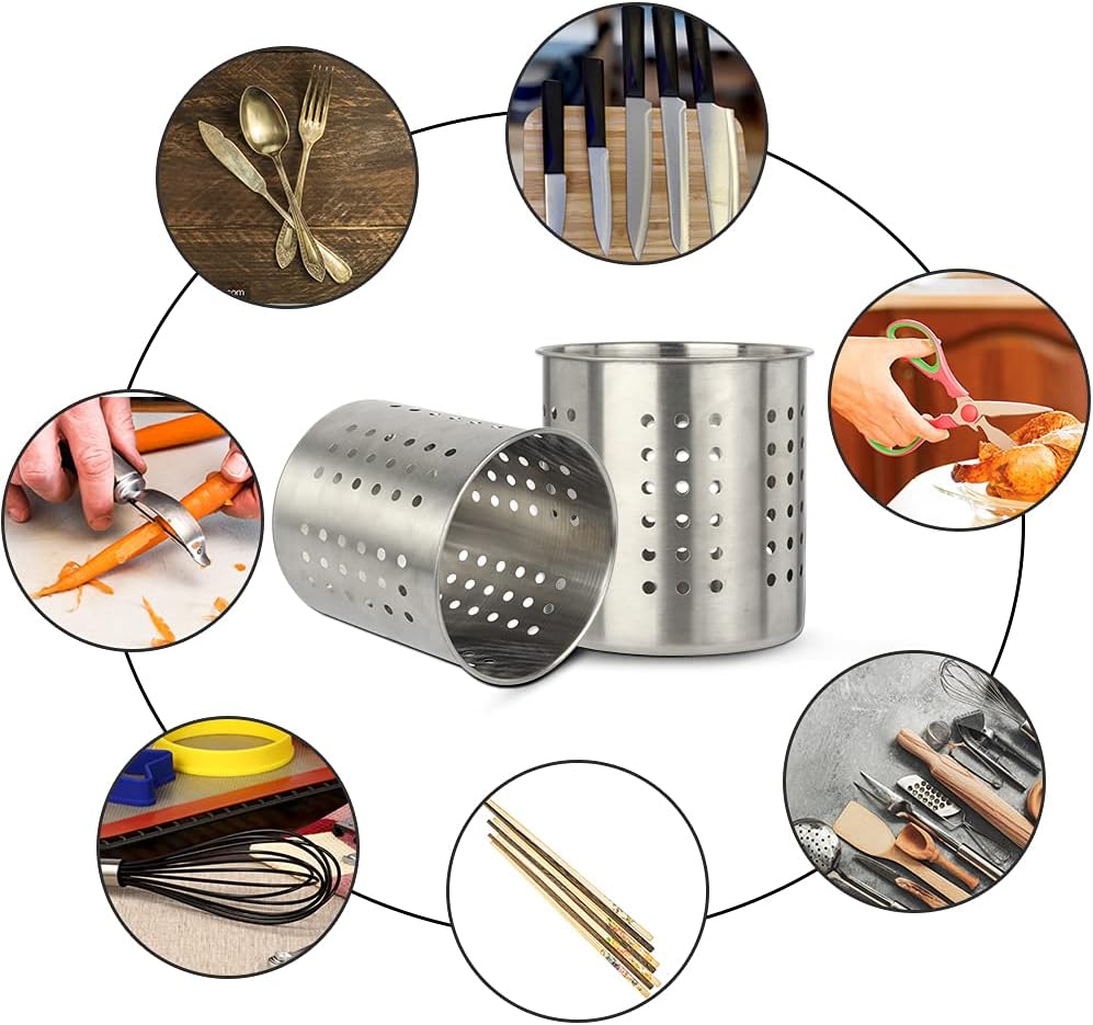 Stainless Steel Utensil Holder Kitchen Holder Restaurant Cooking Utensil Holder for Forks Spatula, 5.3'' x 5.1" Round Utensil Organizer