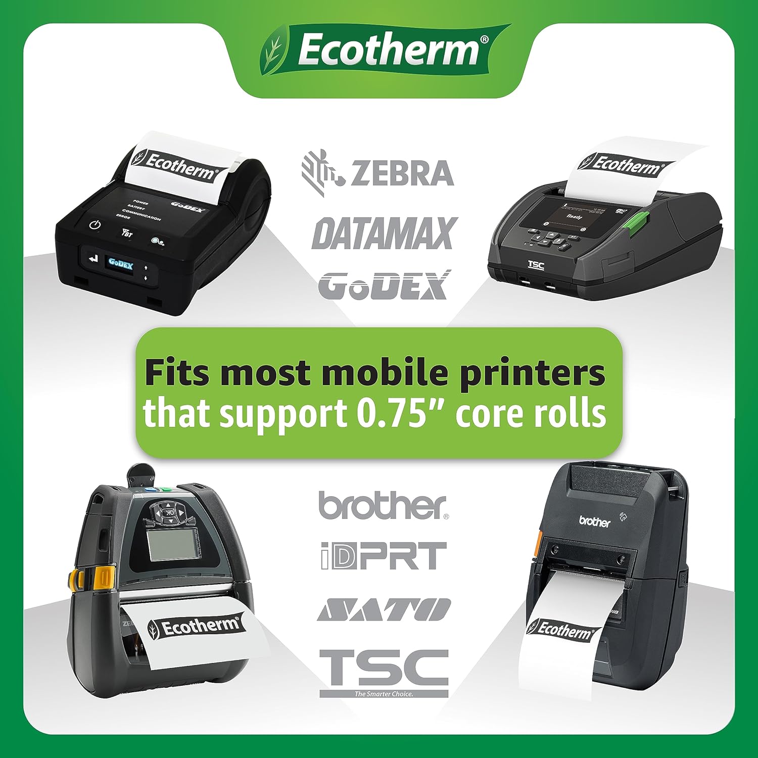 4" x 2" Mobile Printer Labels | 25 Rolls | 7500 Labels | fits Zebra ZQ630, QL420, and QLn420 Printers | Black Mark On Liner | .75" Core Rolls | by Ecotherm