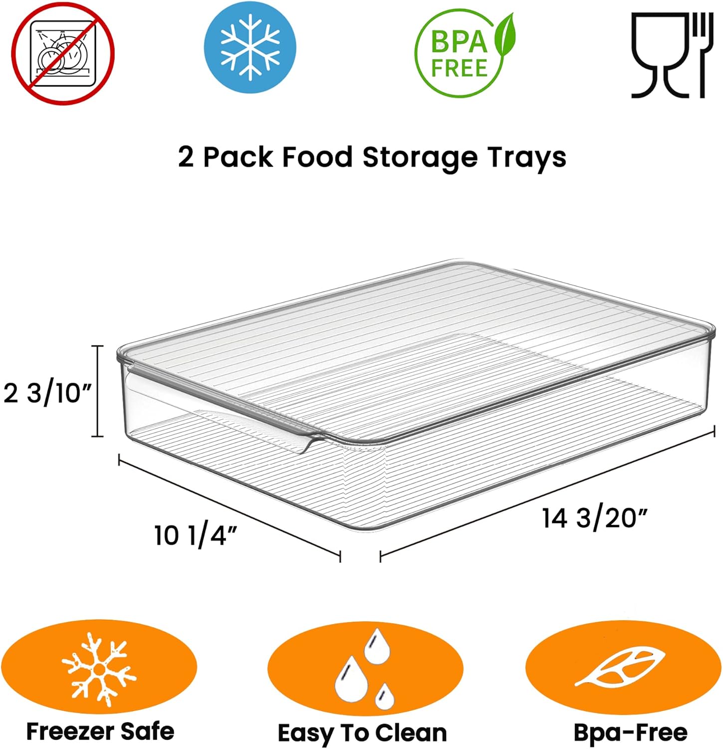 - 【Ideal Size – Set of 2】Each container measures 14" x 10" x 2.3", designed to fit most refrigerators and optimize your storage. Keep your fridge neat, tidy, and fully organized.