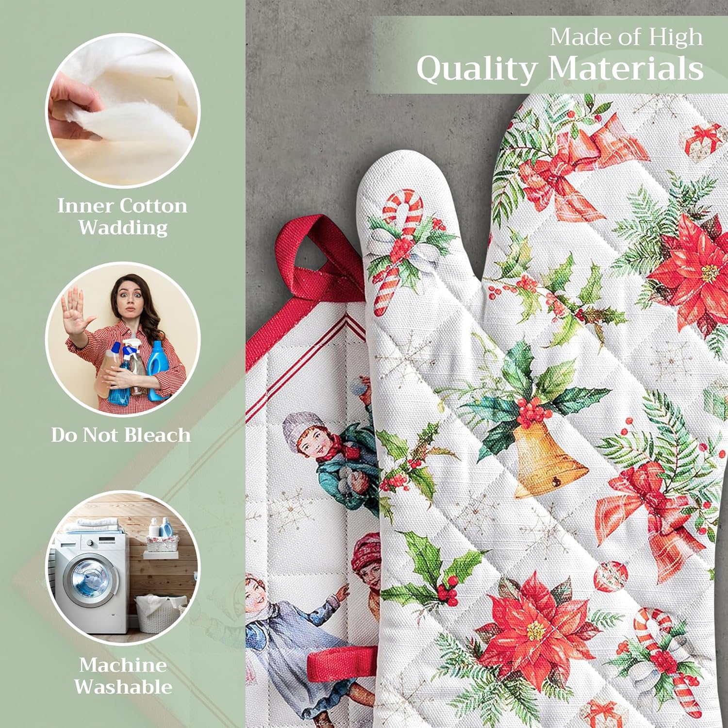 - Artistic style: Add charm to your kitchen with our oven mitt pot holder set featuring watercolor designs inspired by traditional European motifs. Stylish and functional kitchen accessories for every home cook or gift occasion.