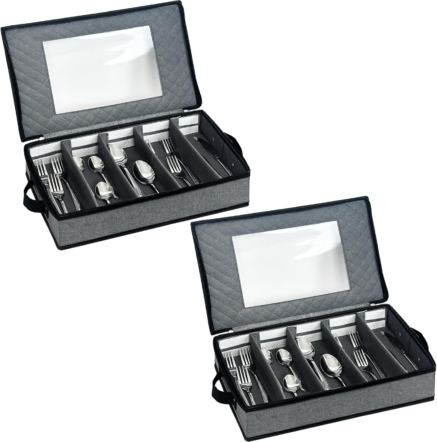 VERONLY 2 Pack Flatware Utensil Storage - Sturdy Silverware Storage Box with Dividers, 5 Compartment Flatware Storage Case with Handles and Removable Lid for Moving&Protected(Dark Gray)