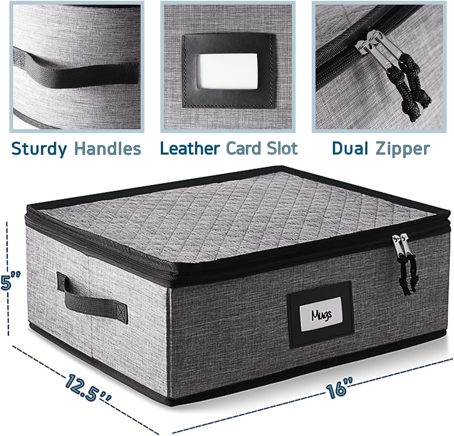- Fits Up to 12 Cups: This coffee mug storage box with dividers fits Up to 12 cups in the 4-inch inner slots. Dimensions: 12.5β x 16β x 5β.
