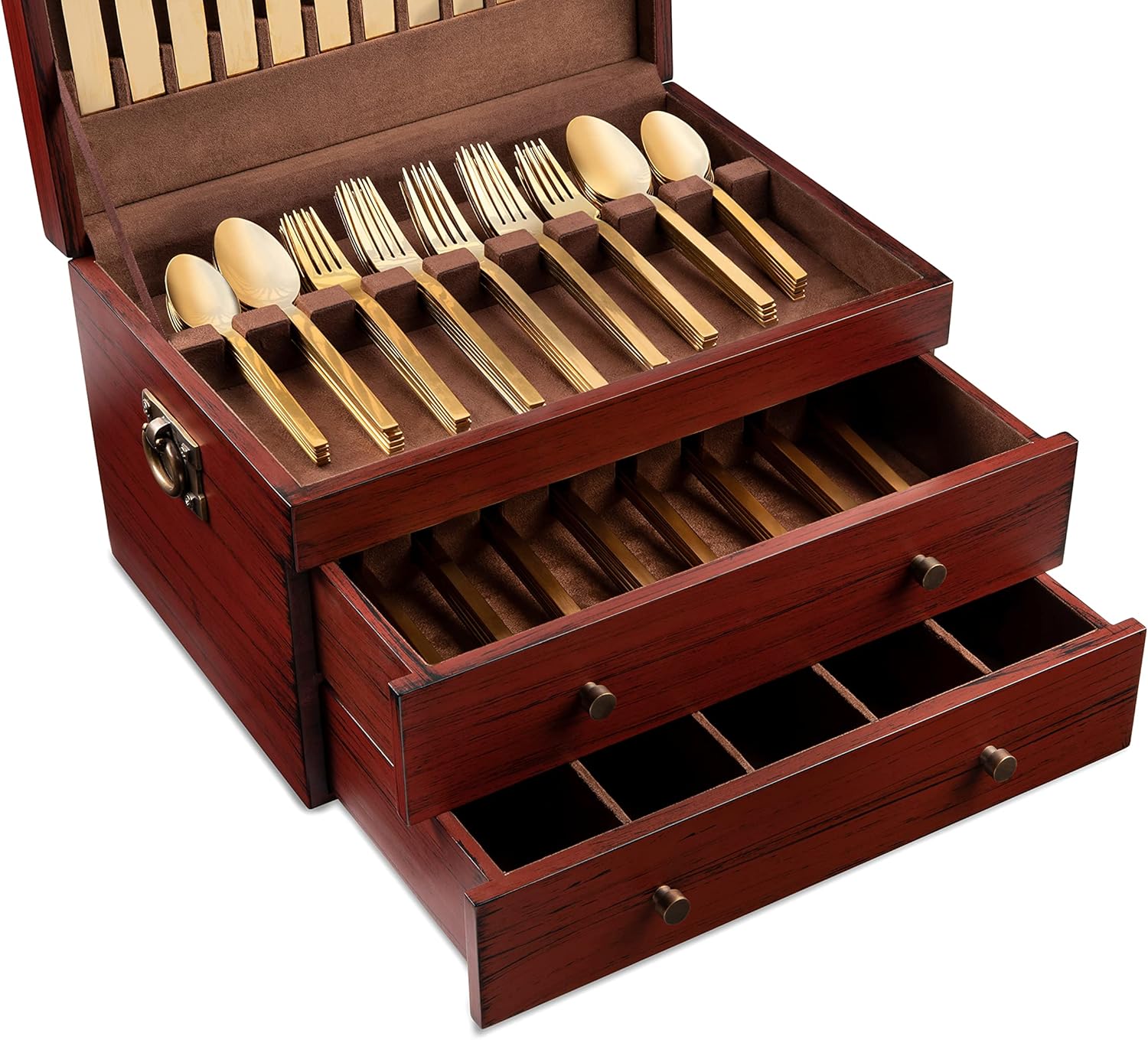 - Premium Silverware Storage Case – Offering rustic charm and modern organization this fine silver storage box provides plenty of space for organizing daily utensils or storing fine silverware that’s only used for parties or special occasions.