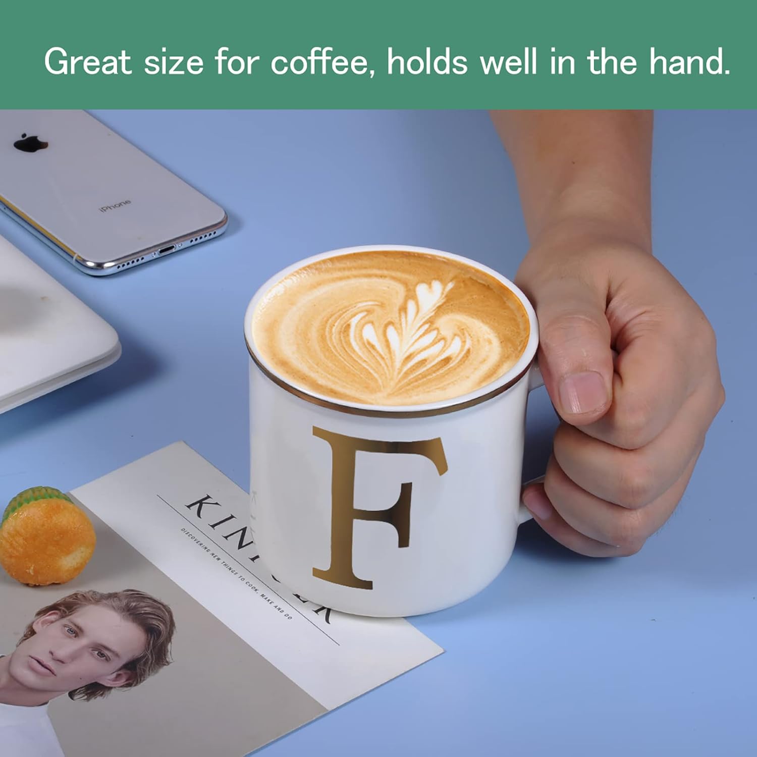 - A Personalized Mug: Showcase your personality with the minimalist design of the MiiCOL ceramic coffee mug, featuring initials. Crafted from pure white ceramic, the mug is adorned with a gold initial on both the front and back, ensuring it is suitable for both right and left-handed use