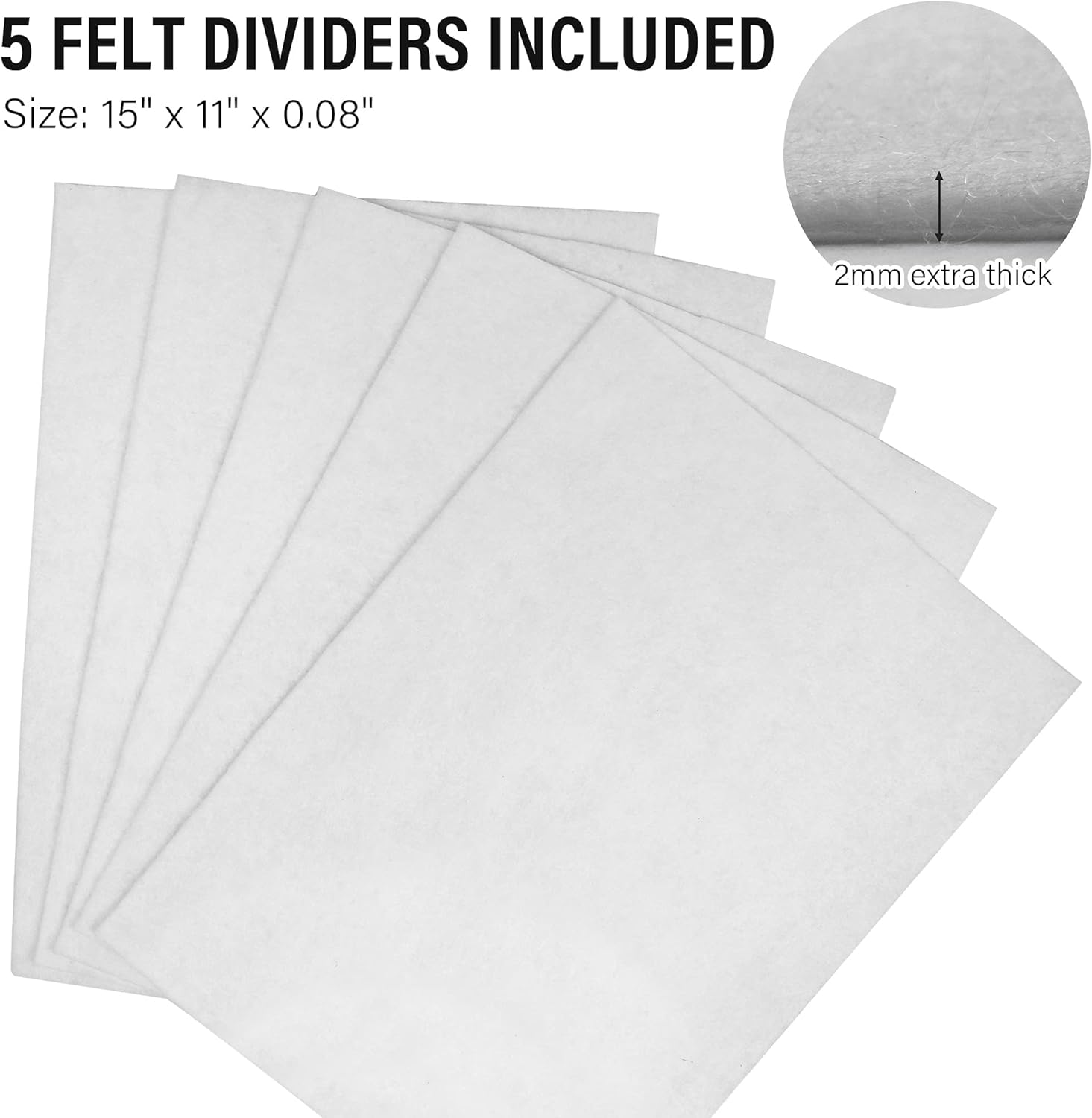 - EXTRA THICK SEPARATORS:Our case contains 5 felt dividers, each is 15x11” and 2mm (0.08”) thick, separates and protects your dishes