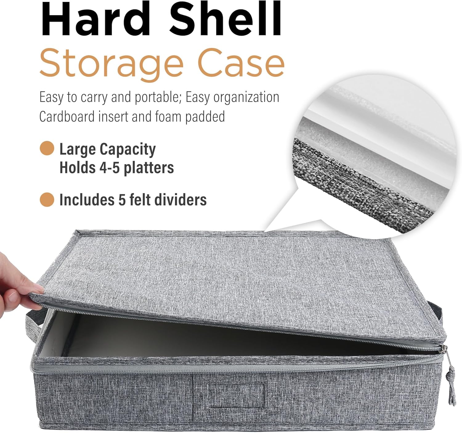 - STURDY HARD SHELL: Our Platter Storage Cases are made of durable polyester fabric, sturdy cardboard inserts and padded foam; Sturdy top cover, bottom and side panels provide ample protection, easy organization and carrying