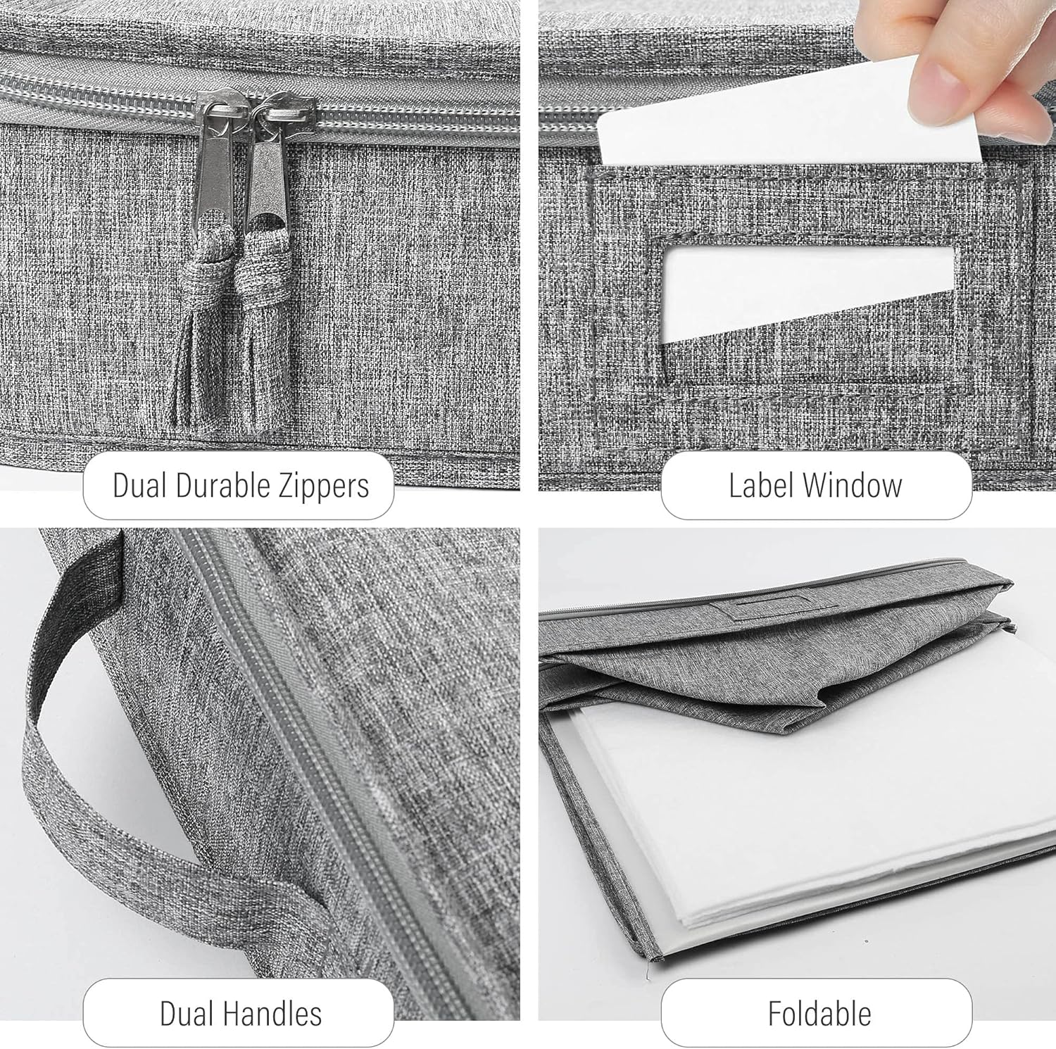 - CONVENIENT DESIGN: Two handles allow for easy carrying and moving; label slot for quick content identification; Dual zippers for easy open and close; Removable bottom panel allows you to fold and store the case when not in use