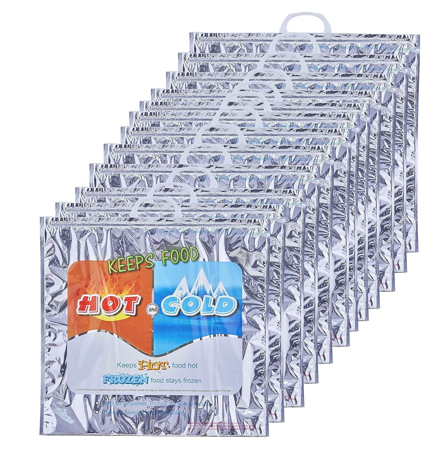 - ✅ TRIPLE LAYER DESIGN - Most other bags are single layer and aren't efficient at maintaining internal temperatures or will start to leak moisture. Our bags feature a sturdy thermal aluminum outer layer, an inner EPE (eco friendly plastic) waterproof layer and a final inner PE non toxic film layer.