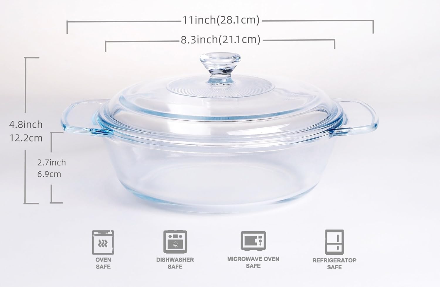 - ā High-Temperature Resistance: An integral forming process is adopted in this glass casserole with lid, seamless and smooth, it is durable and strong, this casserole dish is safe to use in microwave, oven, Refrigerator, Freezer & dishwasher.