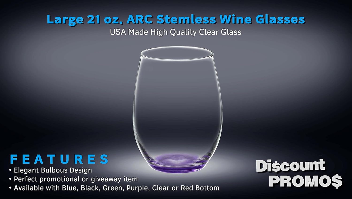 DISCOUNT PROMOS 10 ARC Stemless Wine Glasses Set, 21 oz. - Chardonnay, Cabernet, Merlot, Sauvignon - Purple