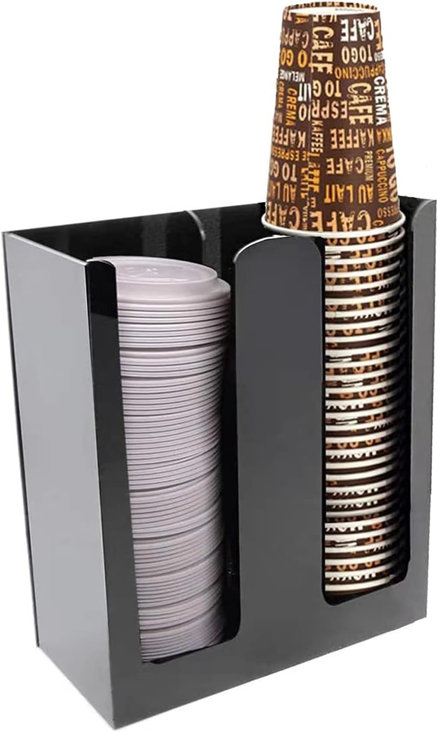 Tirifer Disposable Paper Cup Dispenser, Acrylic Coffee Cup and Lid Storage Organizer Holder, Coffee Milk Tea Shop Restaurant Accessories Christmas Party Supplies, 2 Compartments