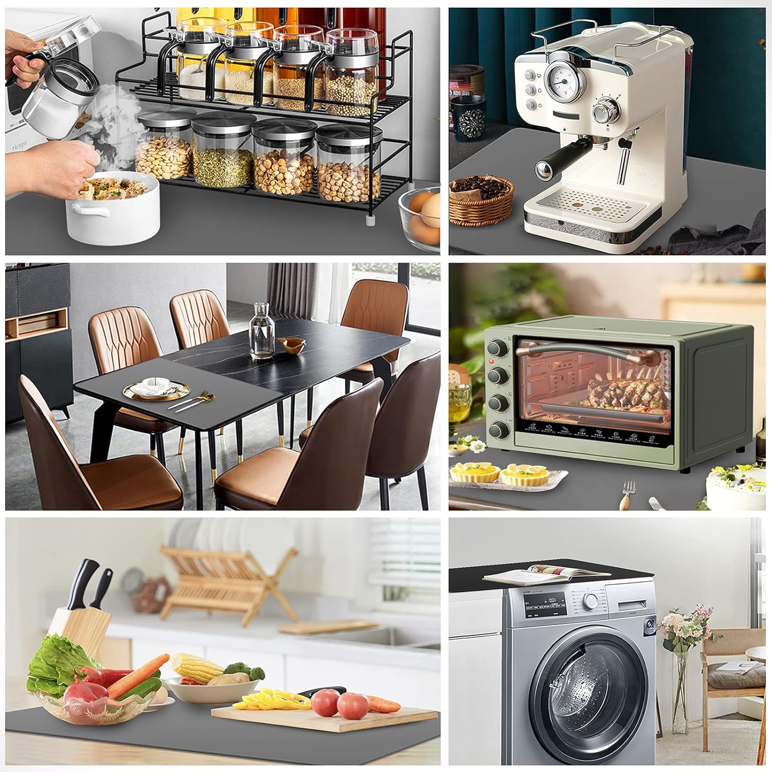 - You Canβt Go Wrong with It: This placemat can solve multiple problems. Great for catching messes. Protect counters from spills, scratches, grease, coffee stains, or damage. Place hot items of all sizes directly on the mat without having to dig through the drawer for a hot pad and no more need for trivets. Reduce the noises made by appliances. No need to worry about items slipping off the countertop. Tools will keep in place. Even if you are rolling dough hard on it, the mat won't slide