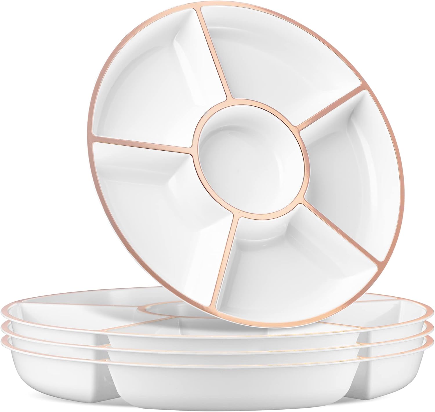 Plasticpro 6 Sectional Round Plastic Serving Tray/Platter (8, White & Rose Gold)