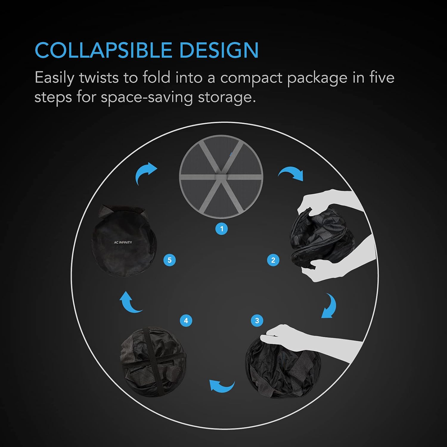 - 4 Tiers | 18 in. Diameter | Fits 2x2 or Larger Grow Tents | Includes Hanging Hook & Carrying Bag