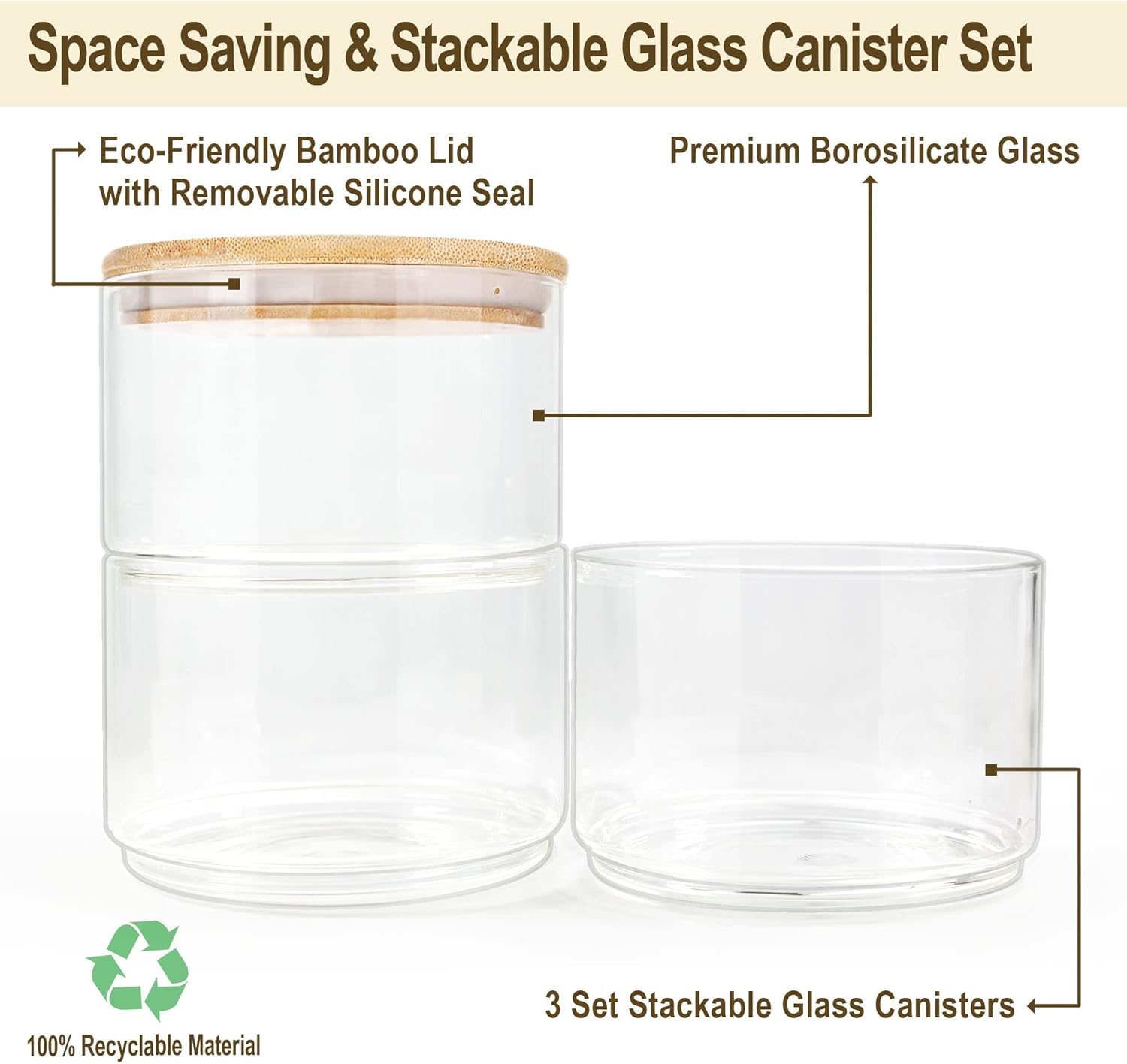 - ✅MOST POPULAR SIZE IN VALUE PACK COMBO: EcoEvo brings you these high quantities high value for dollar sets; We carefully chose the most popular size for our glass jars sets; EcoEvo air tight canisters are specially designed in different heights and large quantity pack combinations for multiple uses; All of them are stackable for space saving storage, the silicone ring makes the bamboo lid close tightly, which makes sure food inside stays dry and fresh for a much longer time