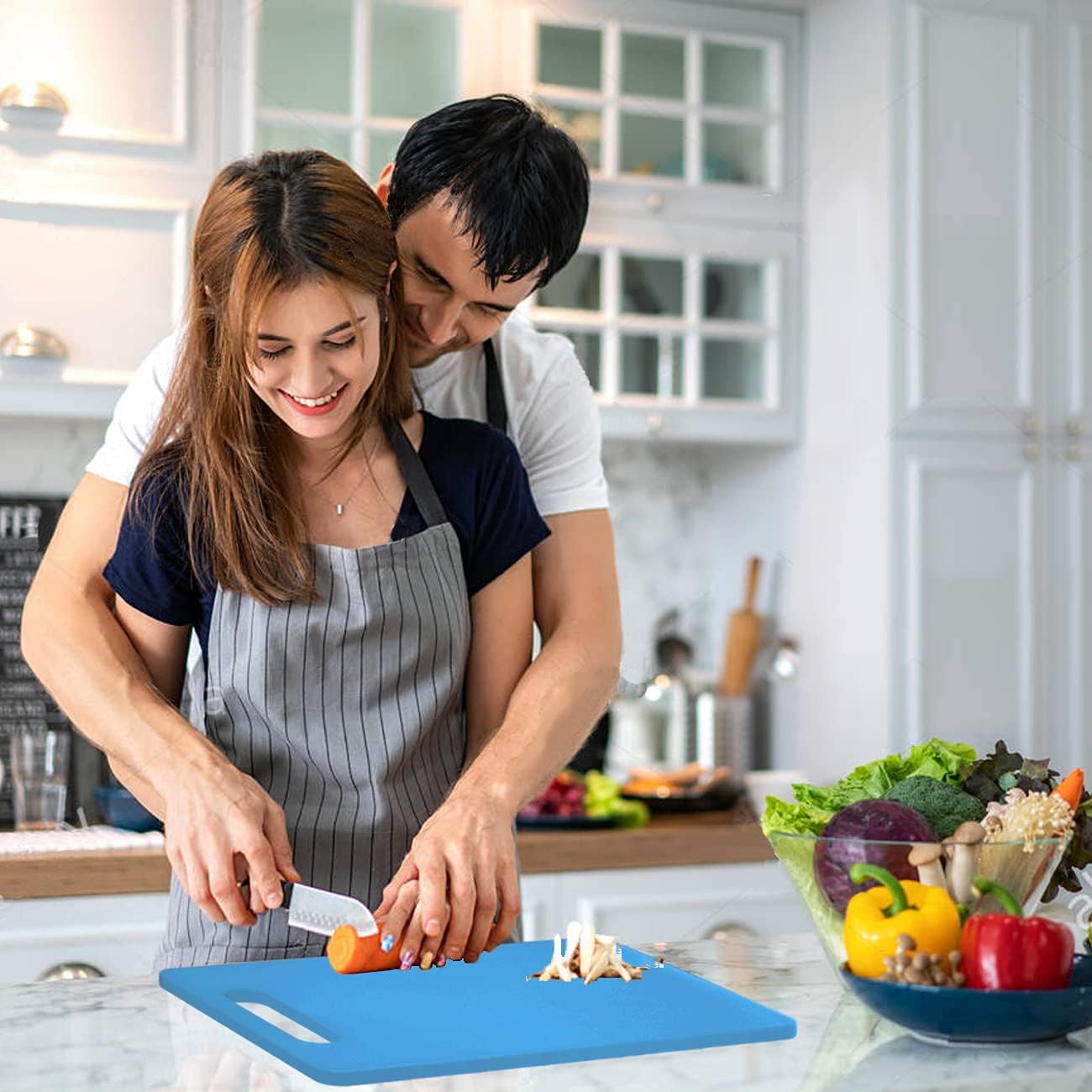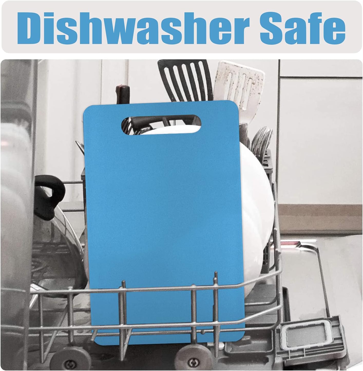 Fotouzy Plastic Utility Cutting Board with Handles, Food Safe PP Material, BPA Free, Dishwasher Safe, Thick Chopping Board, Large Size, Easy Grip Handle, for Kitchen (Blue)