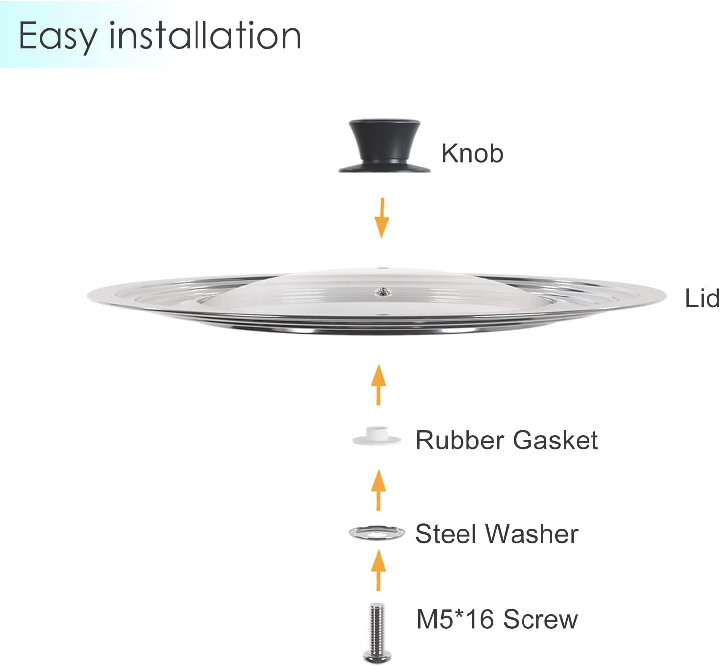 - Sturdy Handle - The universal pan lid comes with a detachable silicone knob, easy to separate for cleaning. Need to Assemble the Knob Yourself within 30 Seconds