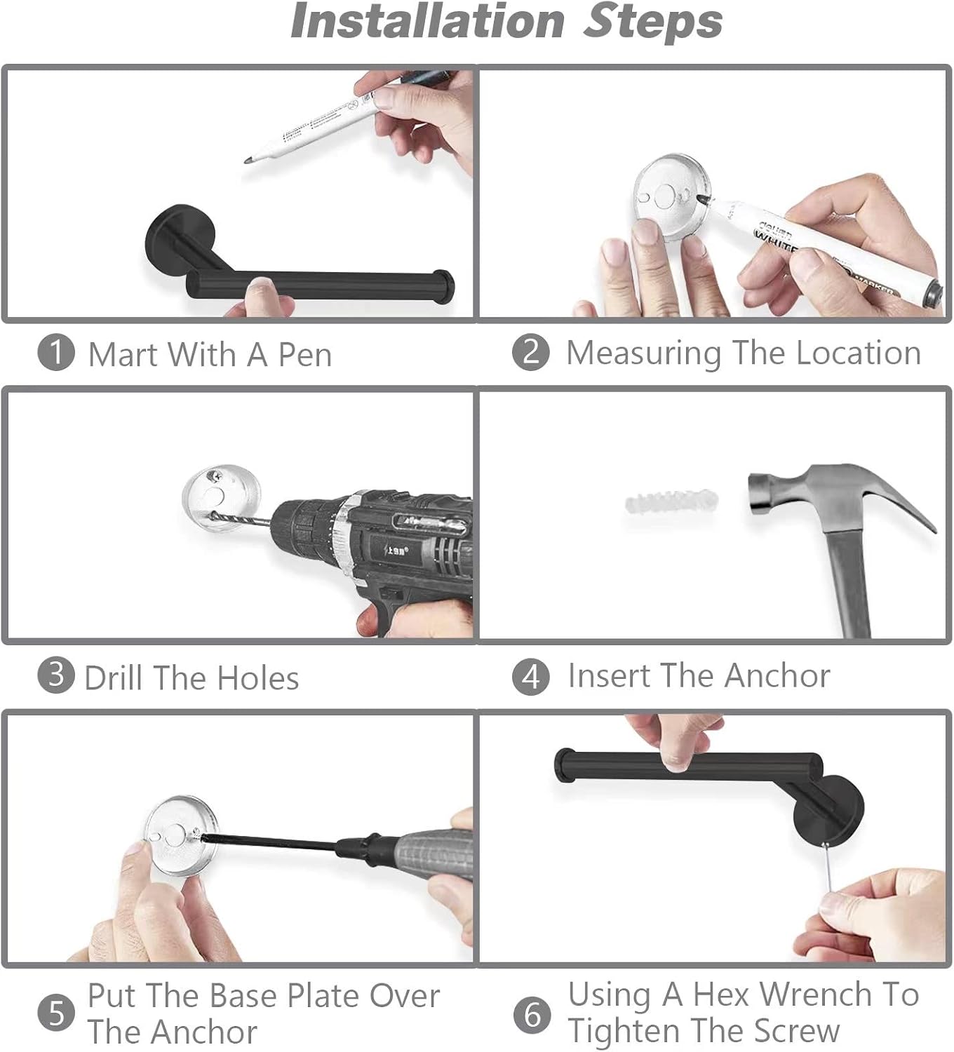 - 【Modern safety design】- This perfect matte black towel holder bathroom accessories have a simple and sturdy design, providing efficiency and style for daily use. the stainless steel towel bar smooth edges protect your body from scratches. Make not any products idle and keep your bathroom clean and tidy!