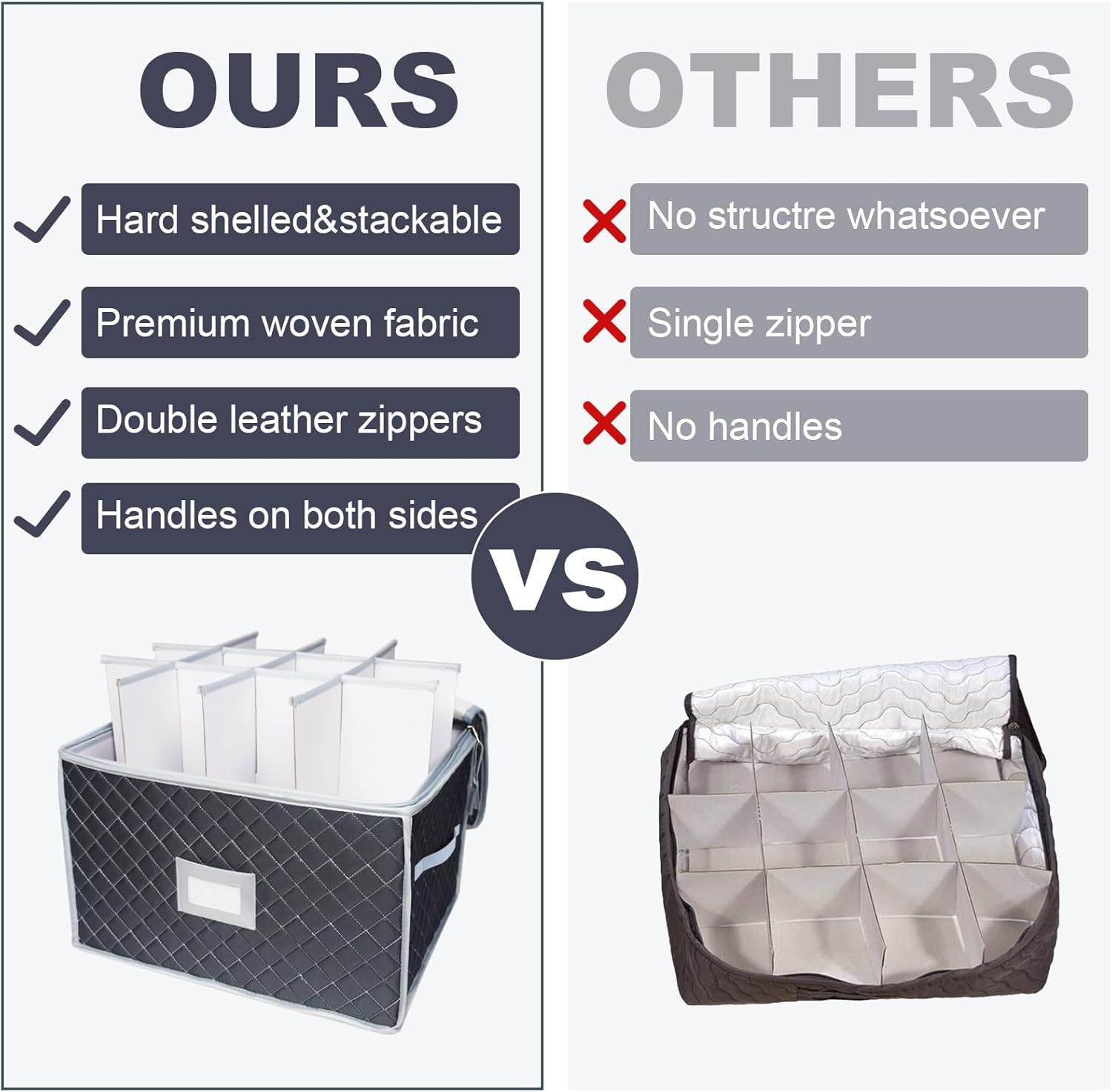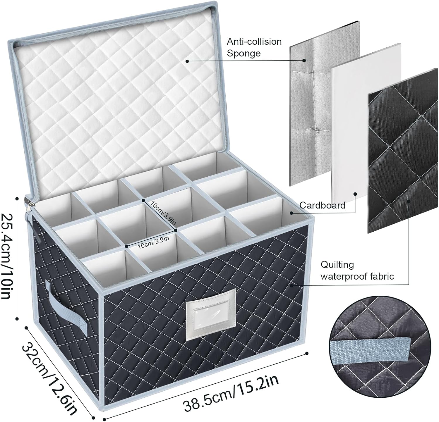 - [24 SEPARATE COMPARTMENTS DIVIDERS] Cup cardboard divider to keep glassware secure from breakage.stemware storage cases can be stored in hutches, cabinets, pantry closets, or buffet.