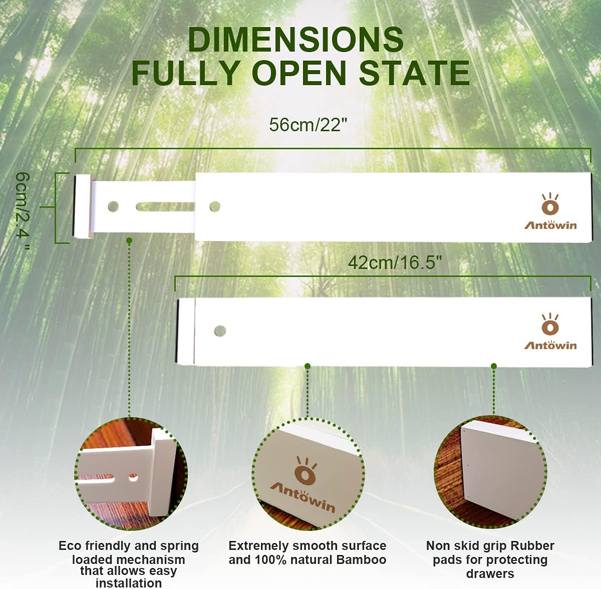 ANTOWIN Bamboo Drawer Dividers Organizers, Expandable Drawer Separators Splitter,17-22 inches Long Adjustable Spring-loaded Organizer for Large Utensil, Clothes, Tools Drawers (White)