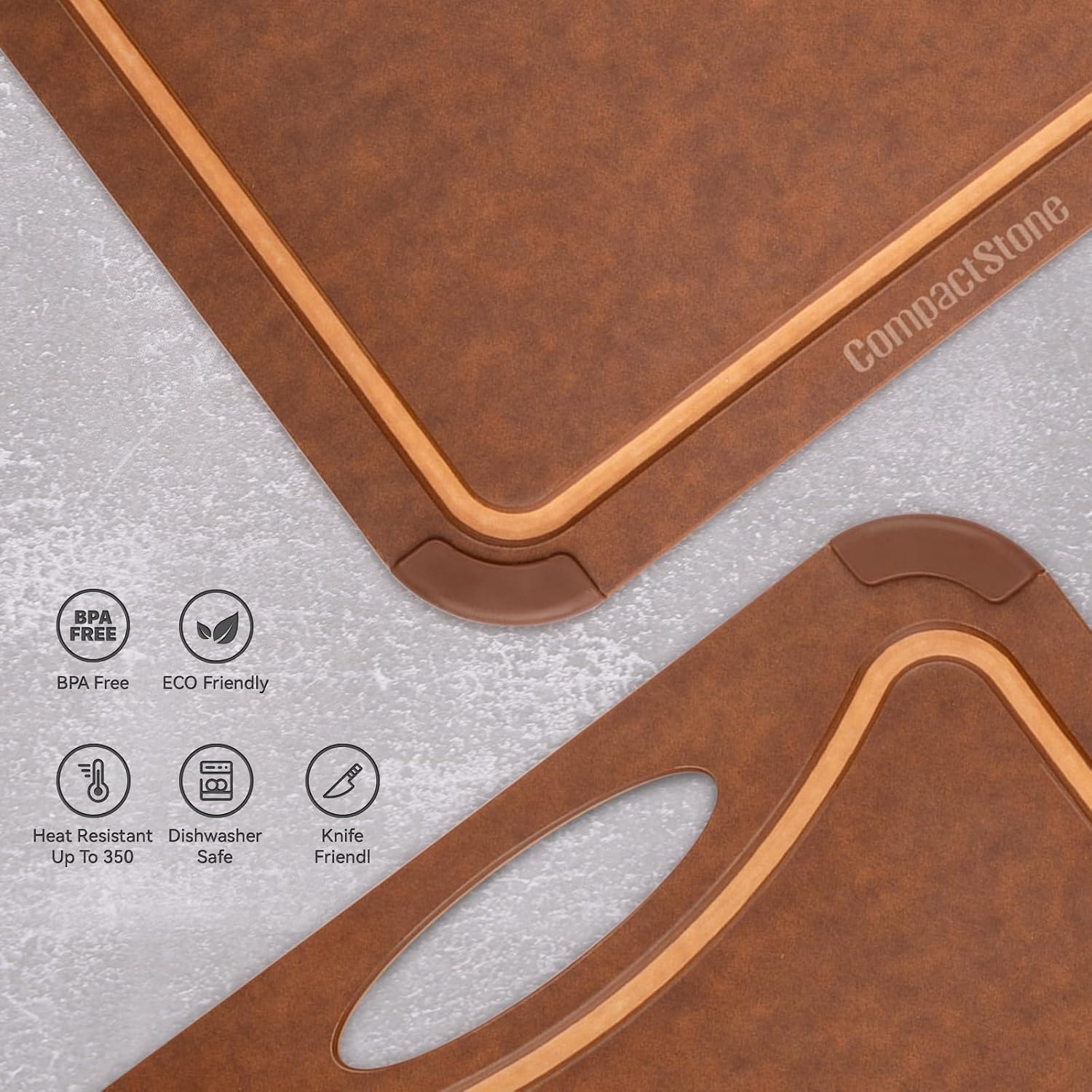 Cutting Board with Non-Slip Feet and Juice Groove for Kitchen, Wood Fiber Composite, 14.6-Inch by 10.8-Inch, Brown