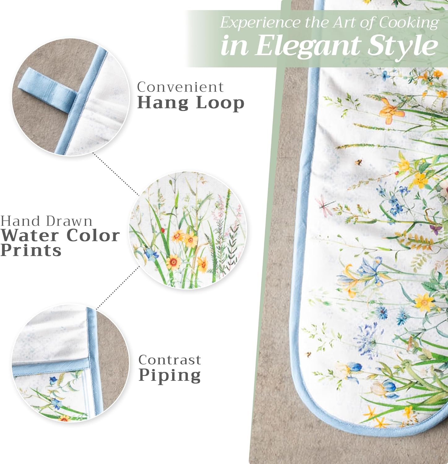 - Package includes: Includes 1 double oven mitt sized 7"x35". Perfect for handling hot cookware safely while adding a touch of European elegance to your kitchen. Designed in Europe and made in India with care
