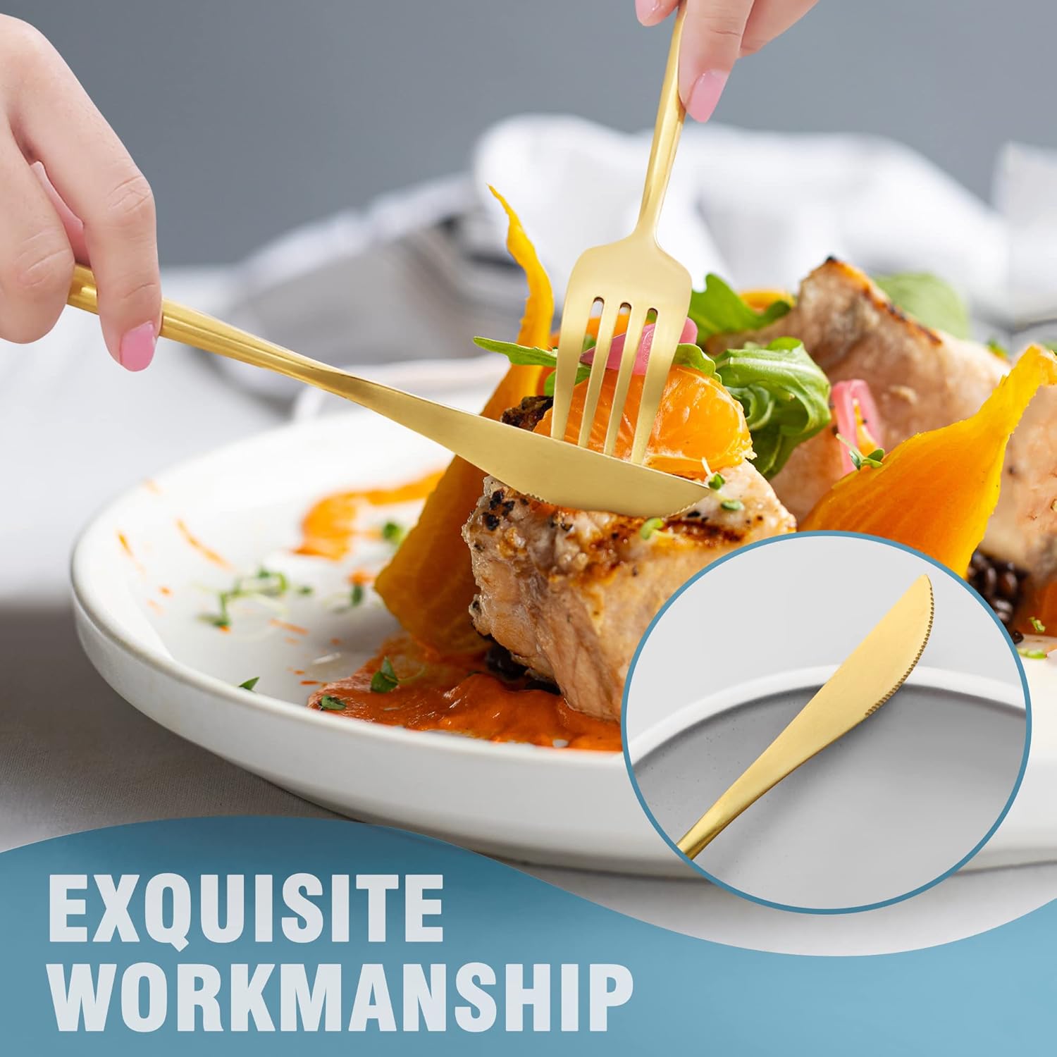 - MODERN DESIGN : The cutlery set is modern and luxury appearance can be a good match for your existing dinnerware set and elevate everyday meals into a fine dining experience