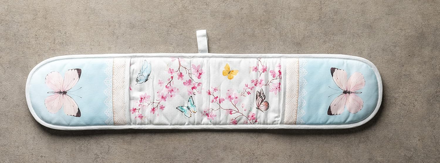 - Package includes: Includes 1 double oven mitt sized 7"x35". Perfect for handling hot cookware safely while adding a touch of European elegance to your kitchen. Designed in Europe and made in India with care