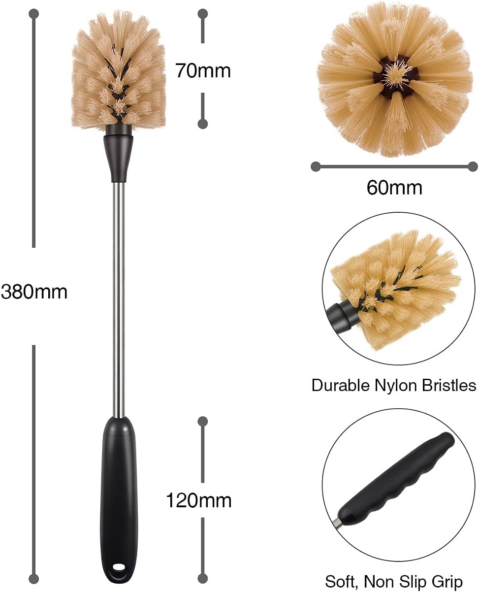 - ā EXTENDED HANDLE: Rubber-covered handle and ergonomic grooves are designed with comfort features.The 14.9-inch extended cleaning brush is designed to reach the bottom of the bottle for an easy deep clean.