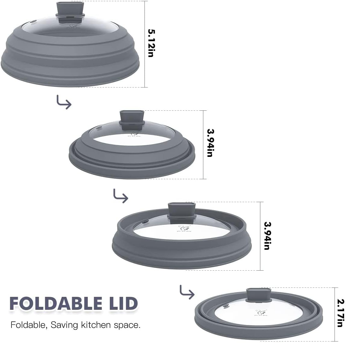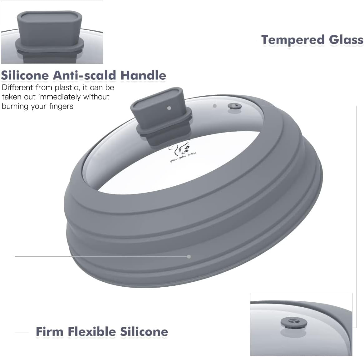 Microwave Splatter Cover Glass Splatter Guard Lid with Collapsible Silicone for Food Pot Plate Cover 10.8 inch Light Grey