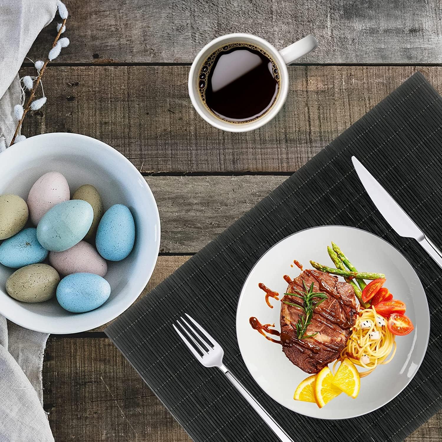 - 【SIZE & MATERIAL】:Each table mat is 17.7"X11.8"(45cmX30cm),set of 8,made from 100% natural bamboo, smooth polishing, environemtally friendly, washable, reusable.Placemats are constructed with round sticks of bamboo. These are similar in construction to sushi rolling mats, and may be used as such.