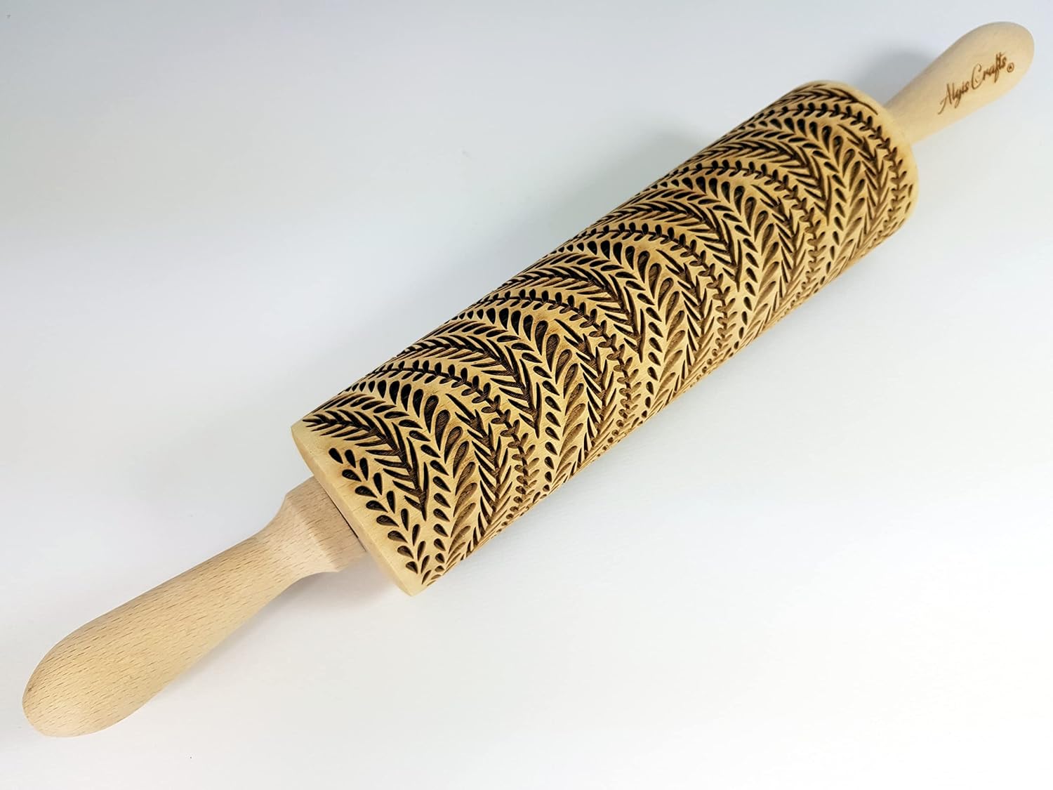 - Use beautifully handmade and finished beech wood kitchen accessories to bring your regular bakes to life with stunning patterns! Crafted from natural wood, this rolling pin features a deep, clearly defined pattern emboss to create stunning home-baked goods, crafts, and pottery!