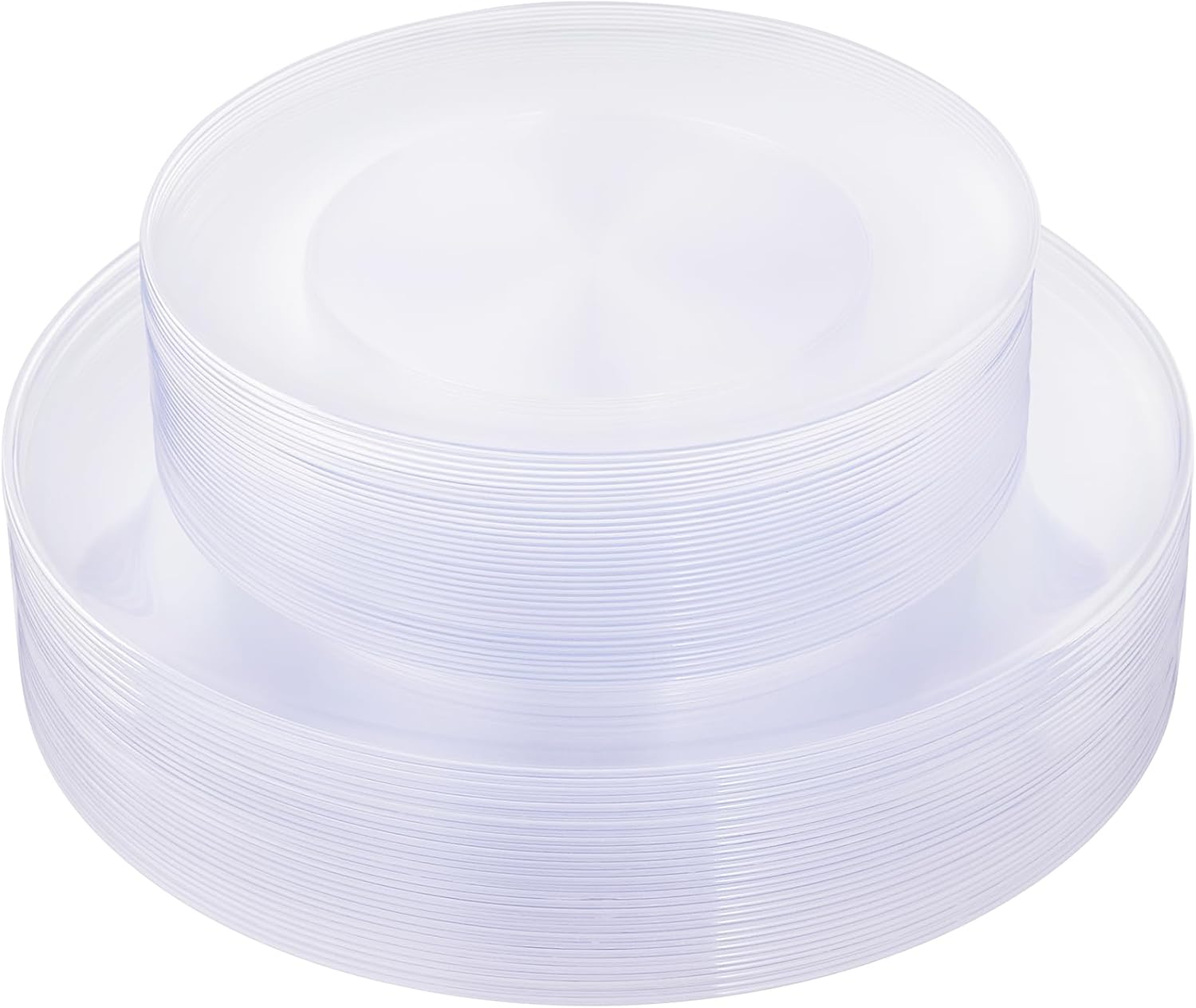 - 【ELEGANT DESIGN】These clear plastic plates are classic in design and are also popular minimalist style. The elegant appearance satisfies the use of all people without a sense of disobedience.Putting them on any table are the icing on the cake