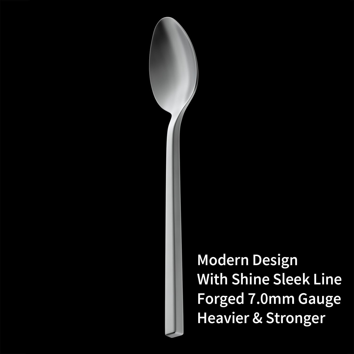 • DESIGN AND APPEARANCE: Classic square handle shape with satin finish, natural and elegant design.Smooth and silk surface without grain, easy to clean and care in daily use. Crafted forged process, strong and durable,so that the flatware set has a thicker texture