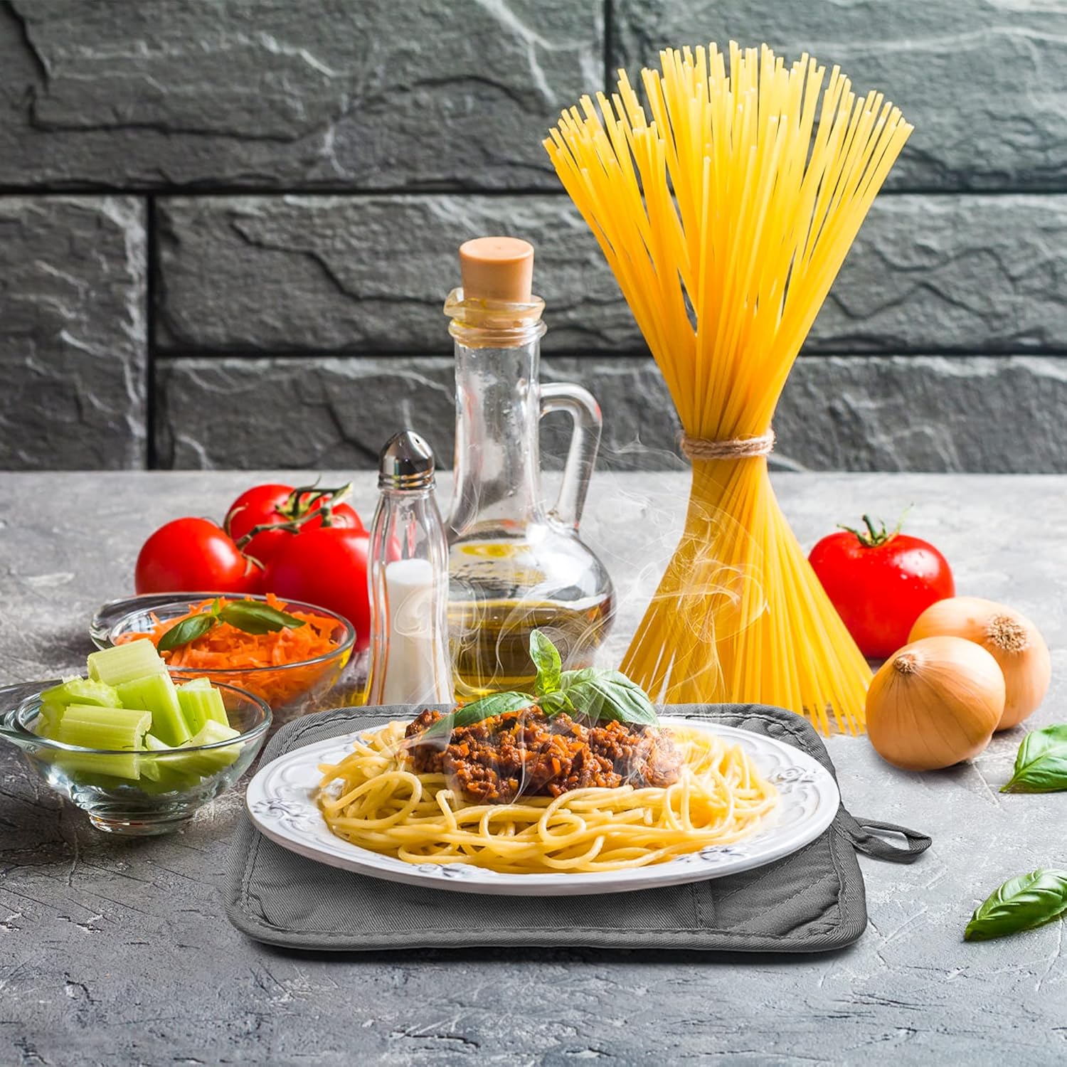 - Great Value Set -- 5 pack large size cotton pot holders(Includes 2 gray pot holders & 3 black pot holders), meet all need of your kitchen! Ideal for hot pan holder, microwave splatter guard, spoon rest, jar opener, trivet, large coaster.