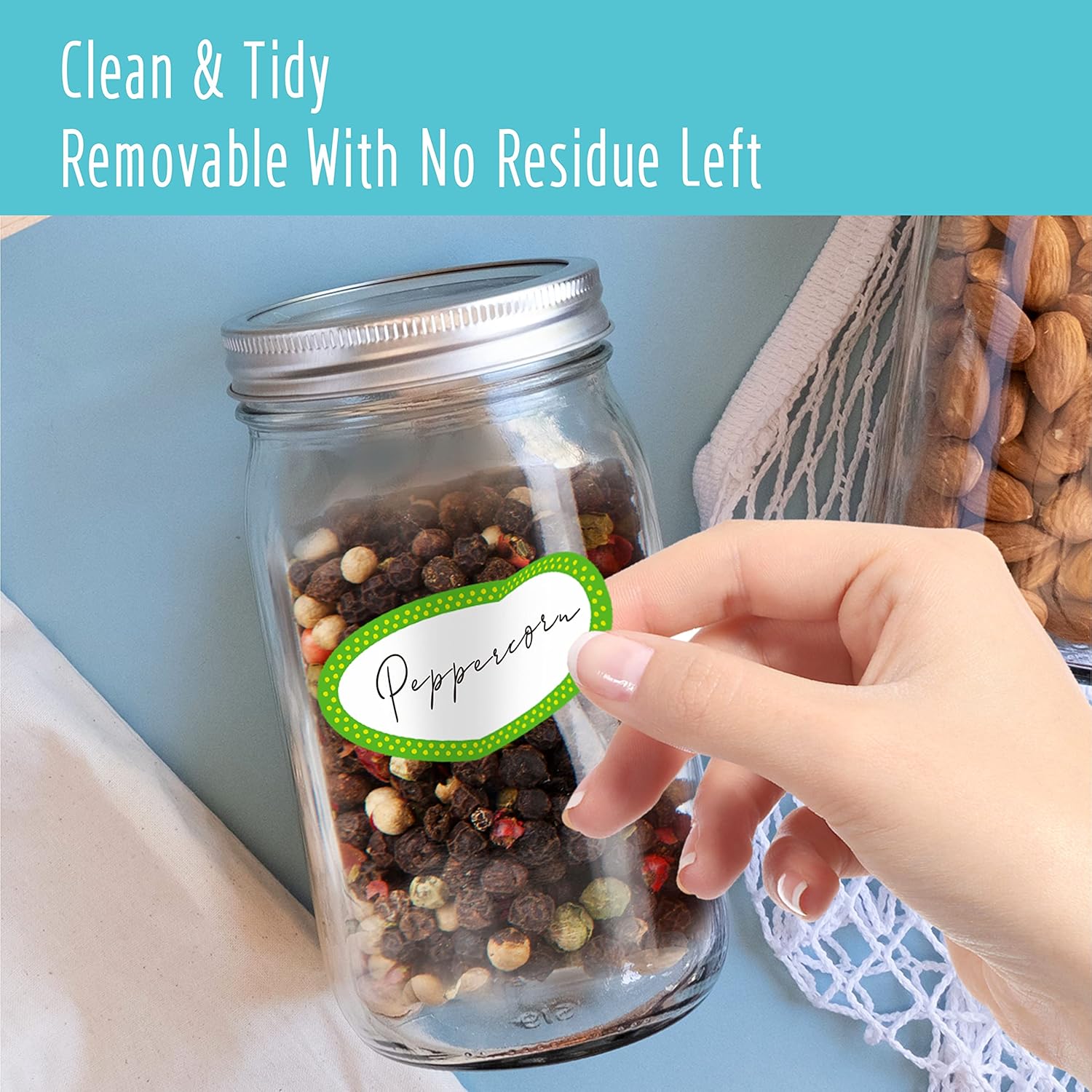 500 Removable Freezer Pantry Canning Labels, 8 Colorful Polka Borders, Water Oil Resistant with Perforation Line for Food Containers Jars Kitchen Restaurant Storage Organization