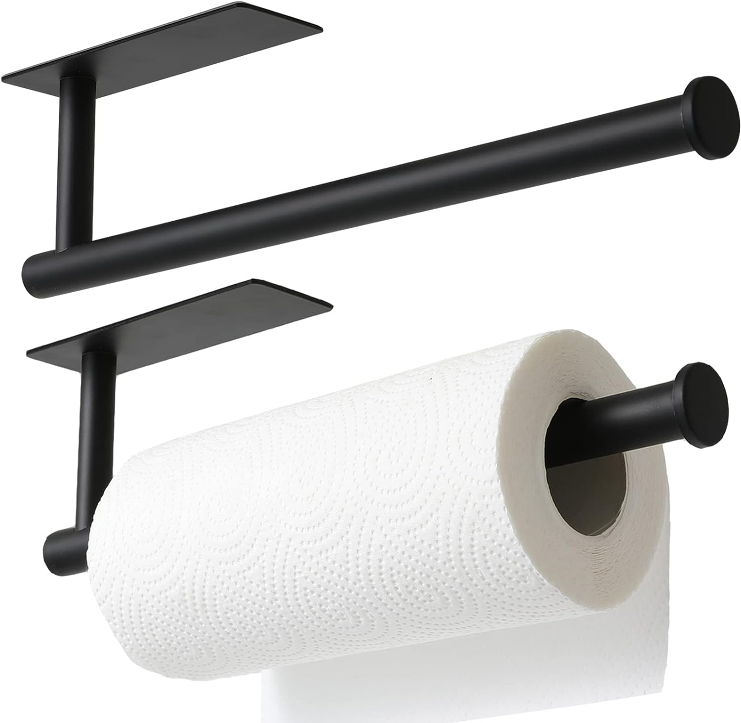 theaoo 2 Packs Paper Towel Holder - Under Cabinet Paper Towel Holder for Kitchen, Adhesive Paper Towel Roll Rack for Bathroom Towel, Wall Mounted Matte Black Paper Towel Rack, SUS304 Stainless Steel