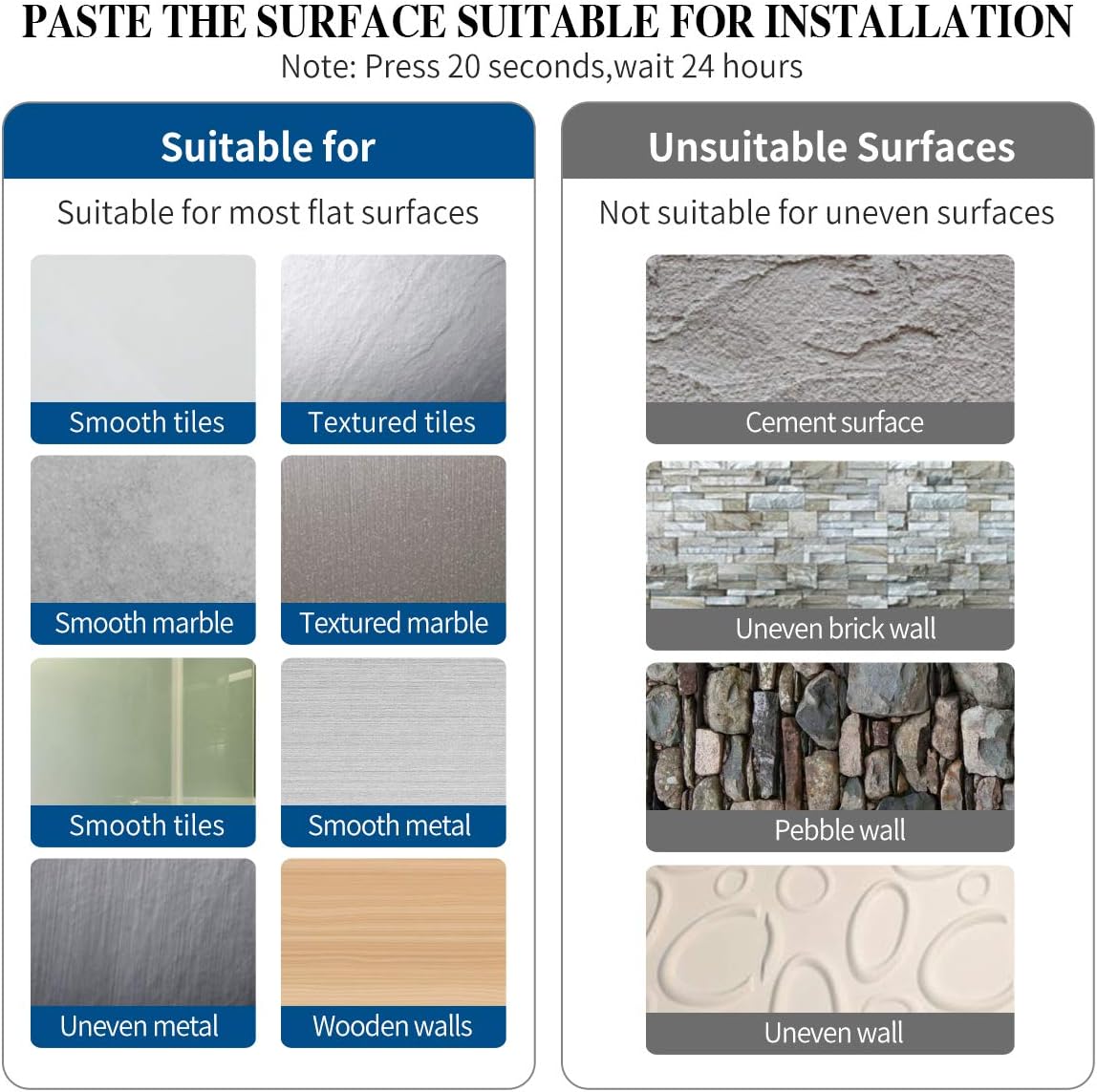 - Installation mode: 【EASY TO INSTALL】【Mounted Vertical or Horizontal】 Both Available for Adhesive and Screws