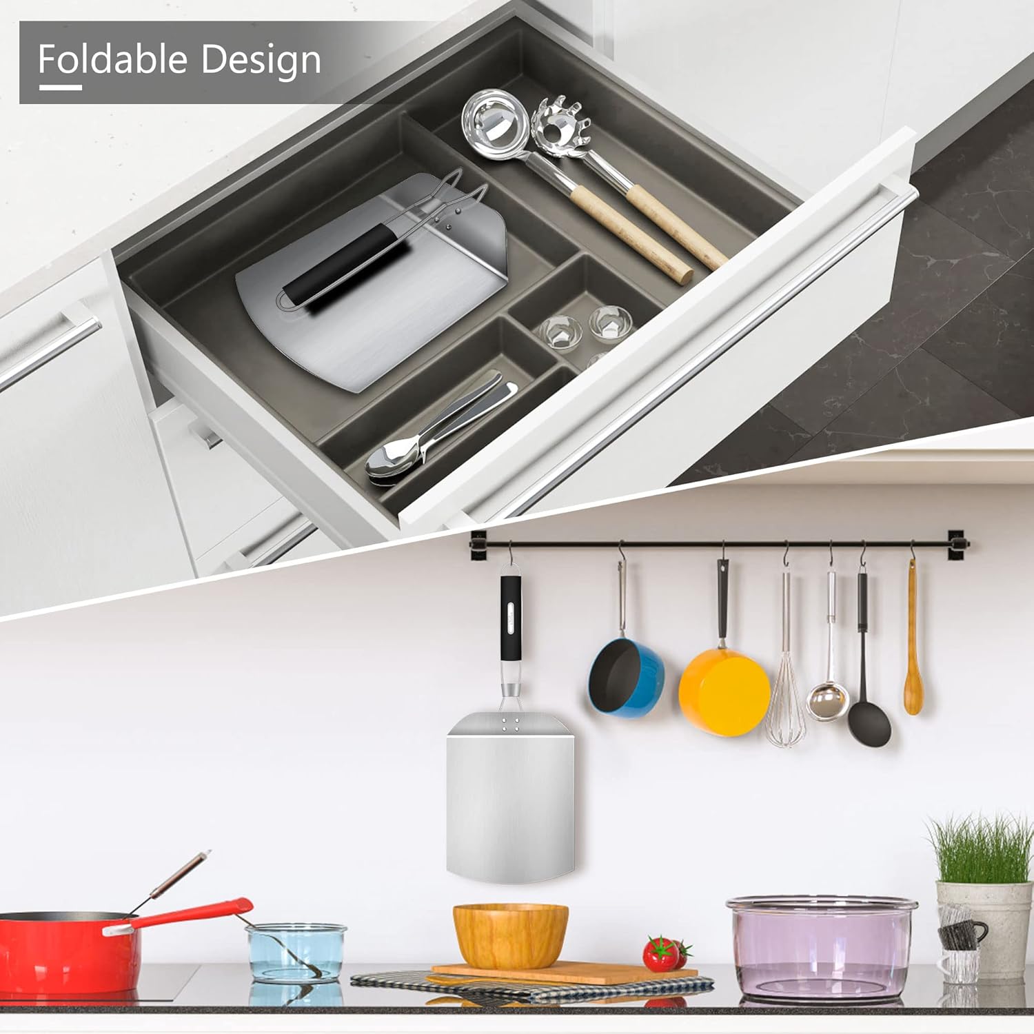 - Elongated Handle keep a distance away with oven when you take out pizza and prevent burn due to near oven. Foldable design convenient collection, pizza peel can fit any kitchen drawer free