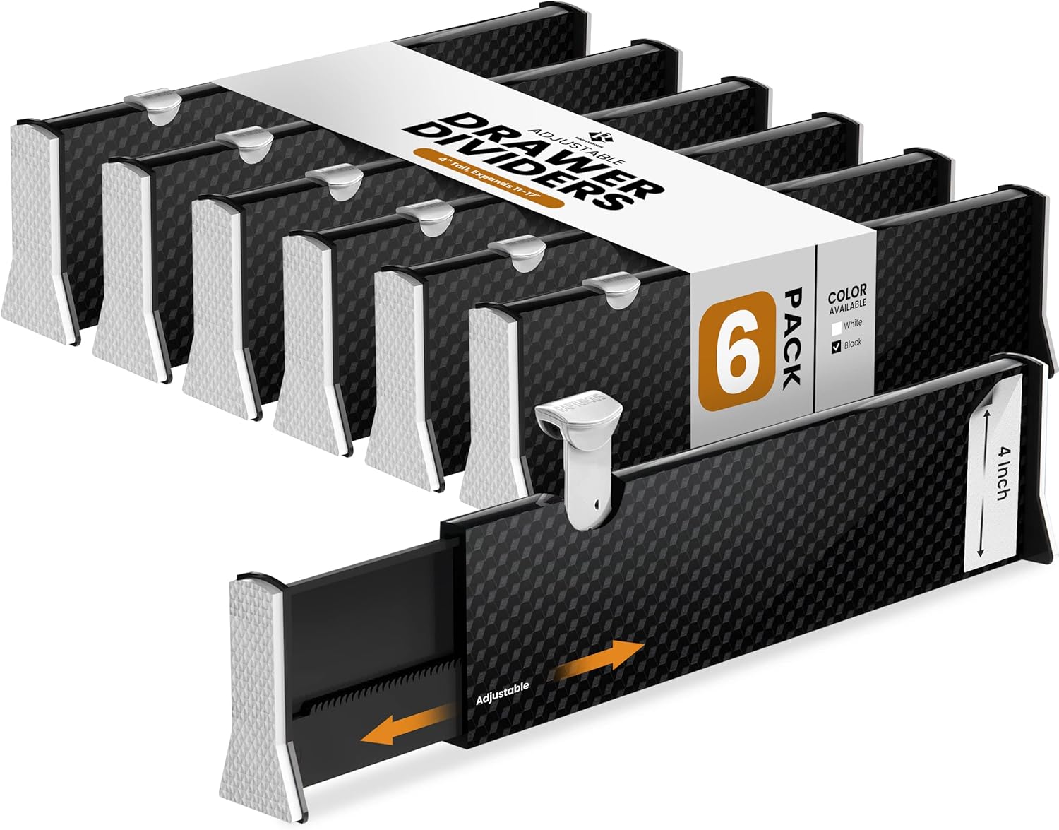 - Well-Designed Size: Includes 6 dividers, each 4 inches tall and expandable from 11 to 17 inches; customizable to fit most drawers and cabinets