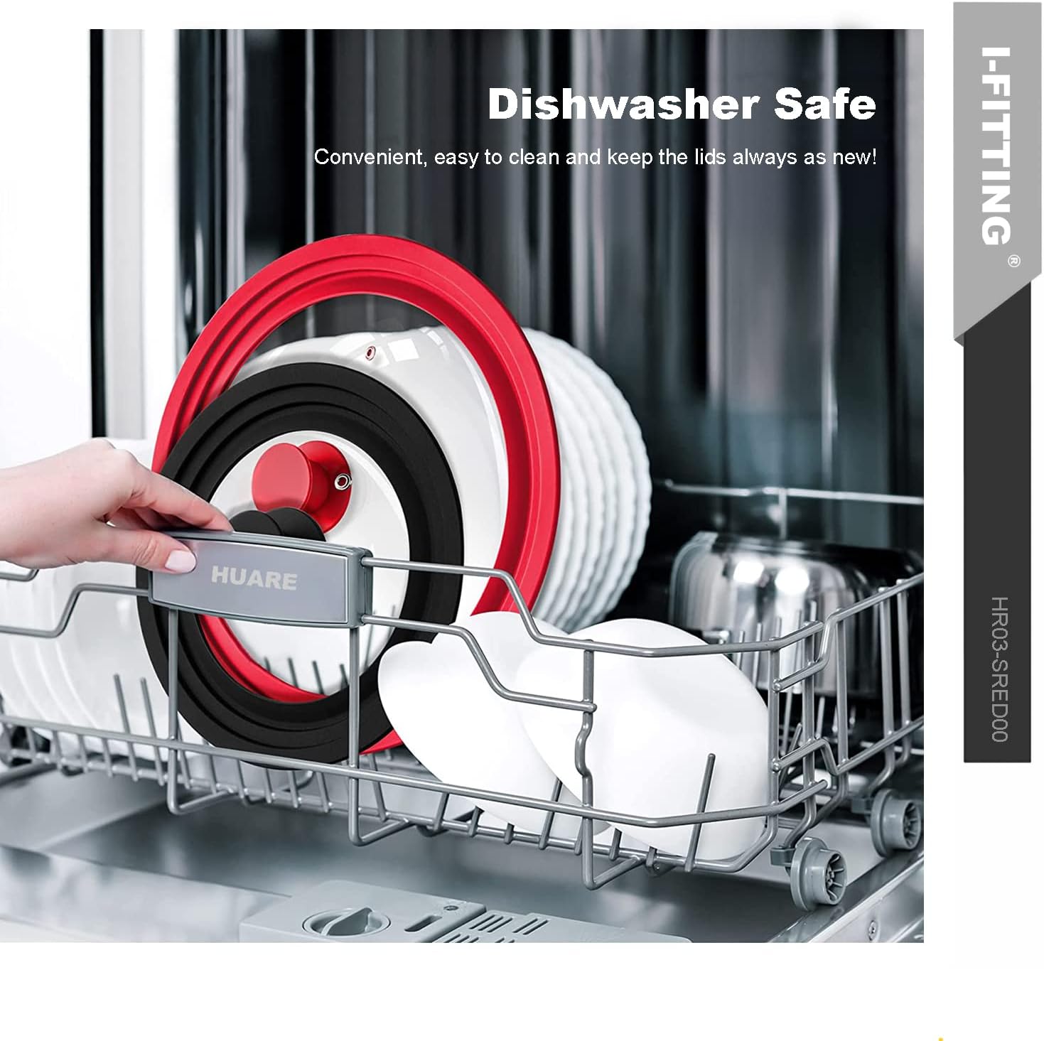 Universal Lid for Pot,Pan,Skillet Fits 6.5",7",8" Cookware Silicon lid Dishwasher Safe, Replacement Lid Vented Tempered Glass with Heat Resistant Silicone Rim By HR Huare Technology, Red,1 Pack