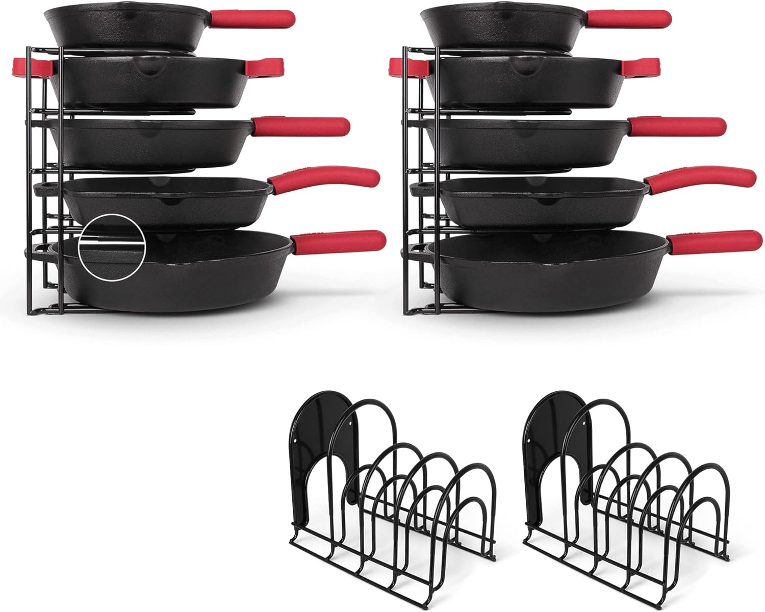Cuisinel Pots and Pans Organizers - 2-Pack of Silicone-Coated Non-Slip 12" Heavy Duty Skillet Rack - Kitchen Organization Storage - Holds Cookie Sheets, Cutting Boards, Cast Iron Cookware, Dish Stand