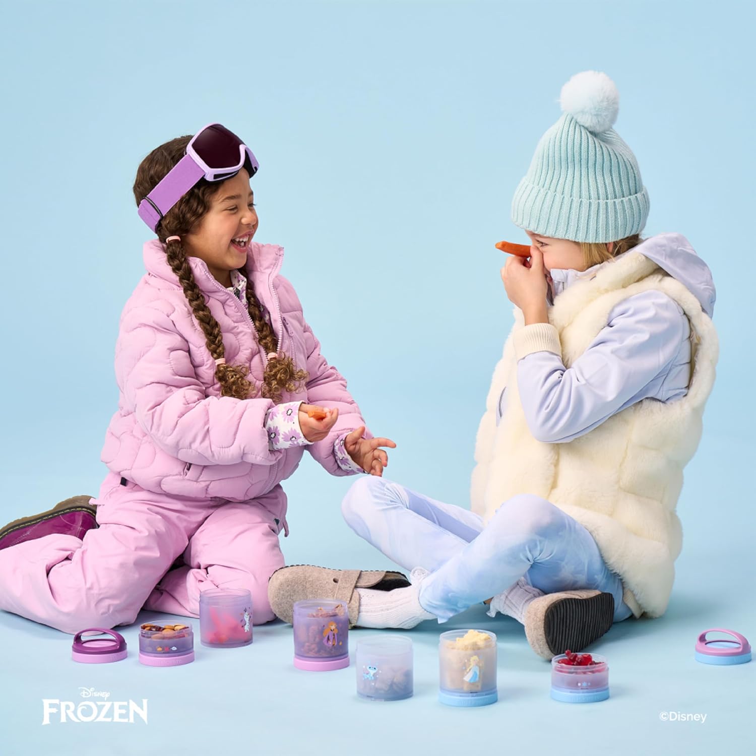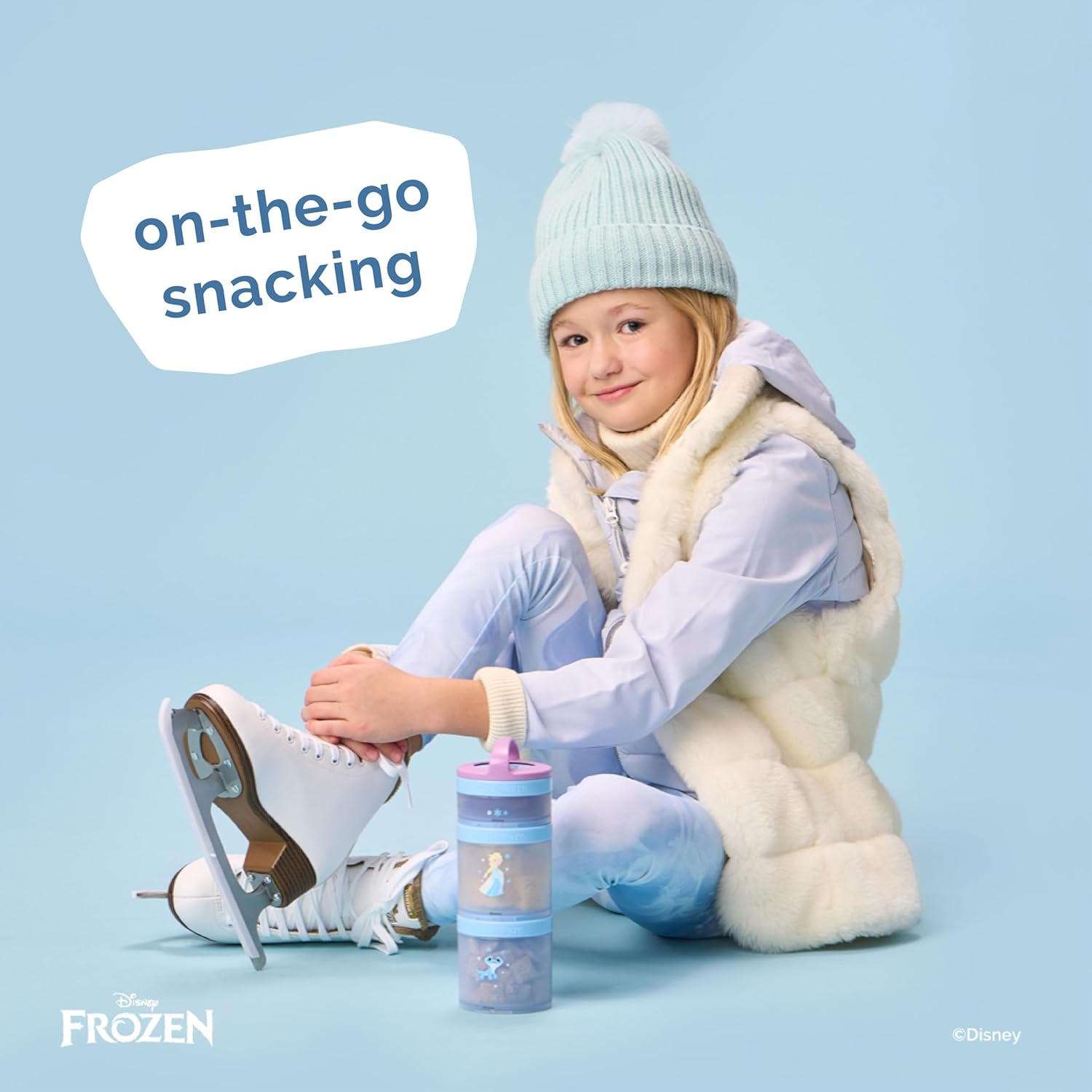Whiskware Disney Princess Frozen, Stackable Snack Containers for Kids, 3 Stackable Snack Cups for School or Travel, Formula and Cupholder Friendly, Elsa and Bruni
