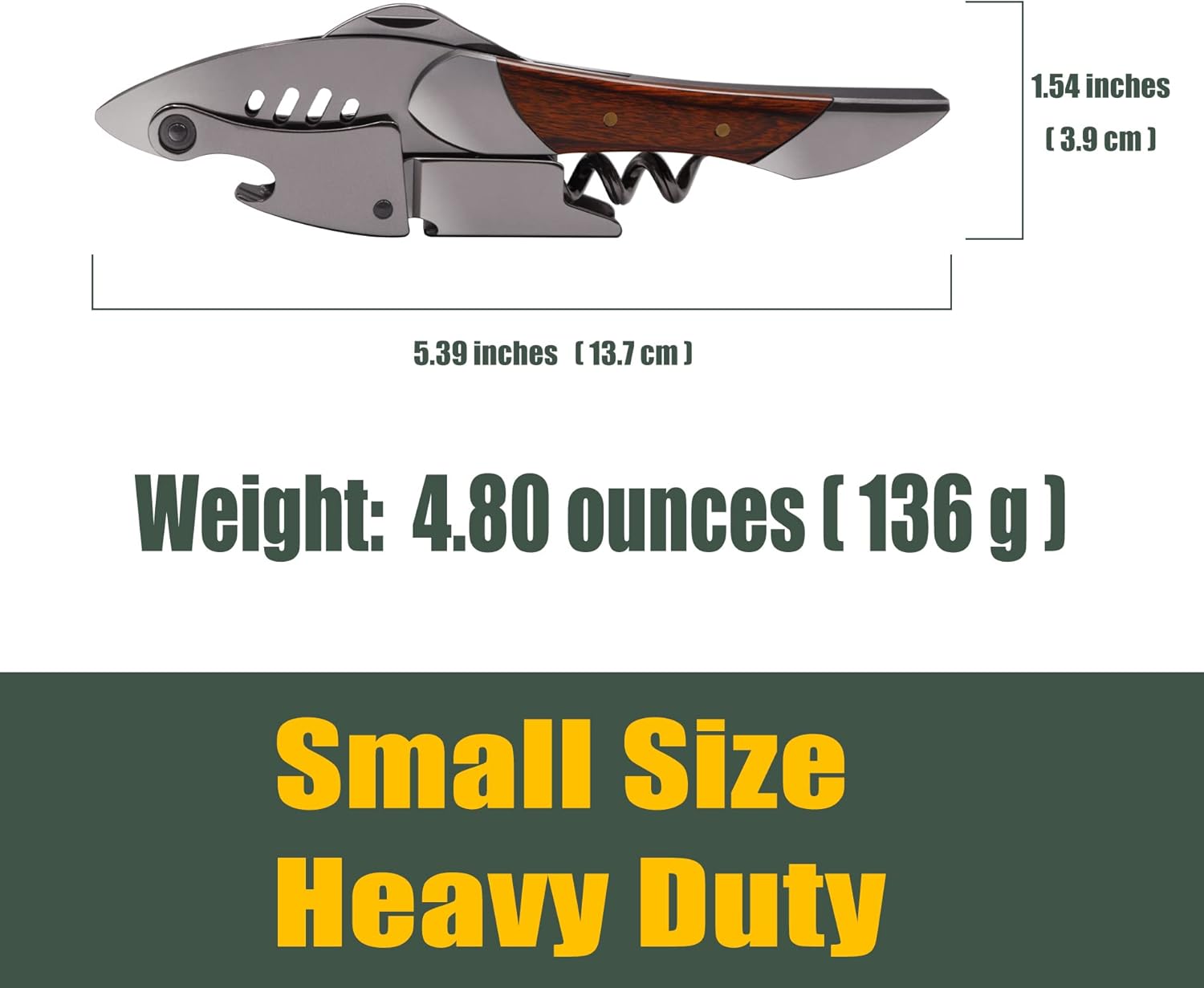 Waiters Corkscrew, Wine Bottle Opener, Heavy Duty Stainless Steel, Rosewood Handle, Shark Shaped Wine Key, Gift for Waiters, Bartenders, Sommelier