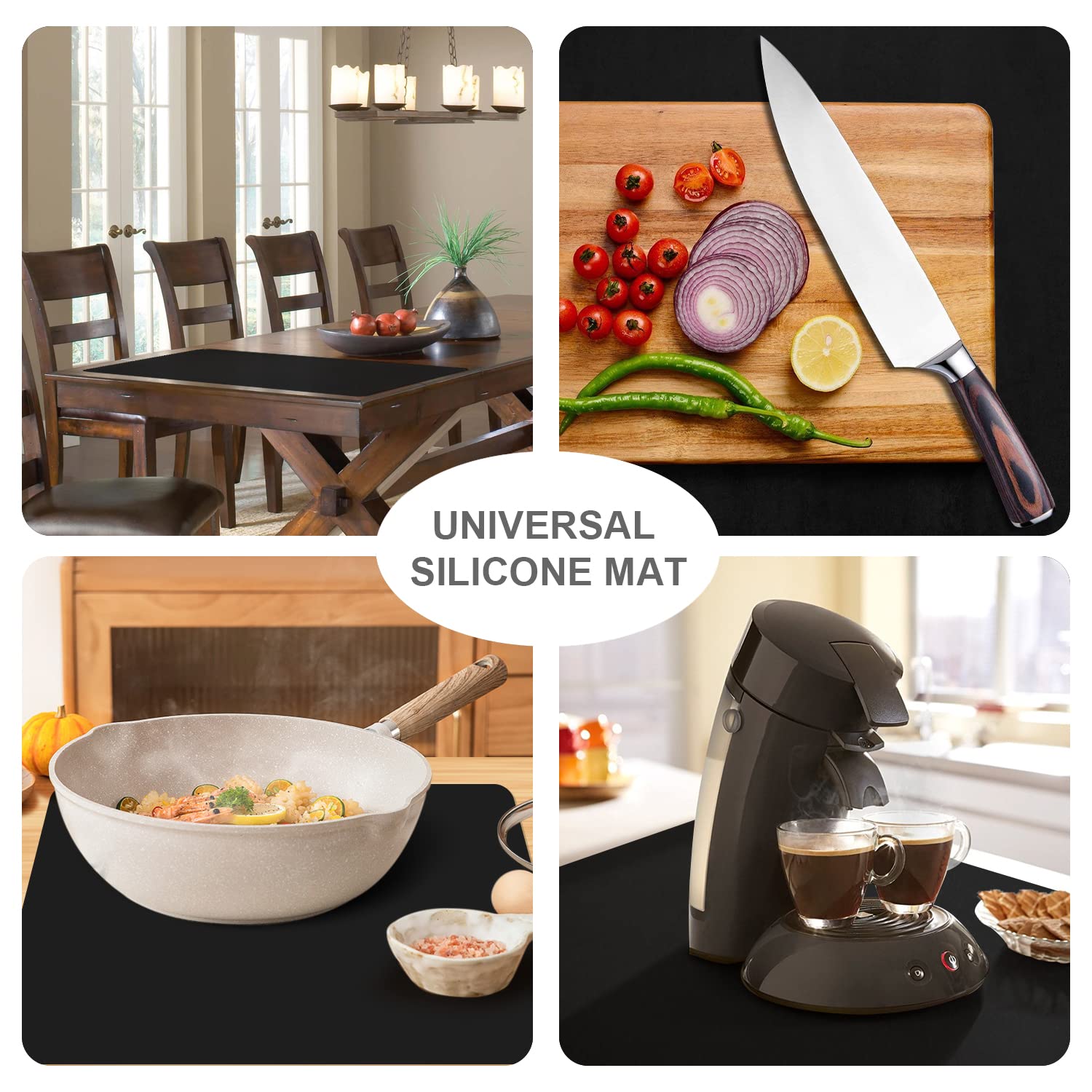 - ā ANTI-SLIP & NON-STICK: Our kitchen counter mat has a perfect texture to keep things from sliding. Needn't worry about it will move when eating and writing. Besides, the black silicone mat for countertop is perfectly suitable as a baking mat; easy to push the dough away without sticking to the surface when we make pastries, bread, pizza, cake, etc.