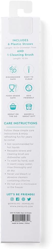 Swig Life Reusable Straws Stars & Stripes + Red Tall Straw Set & Cleaning Brush, Each Straw is 10.25 inch Long (Fits Swig Life 20oz Tumblers, 22oz, and 32oz Tumblers)