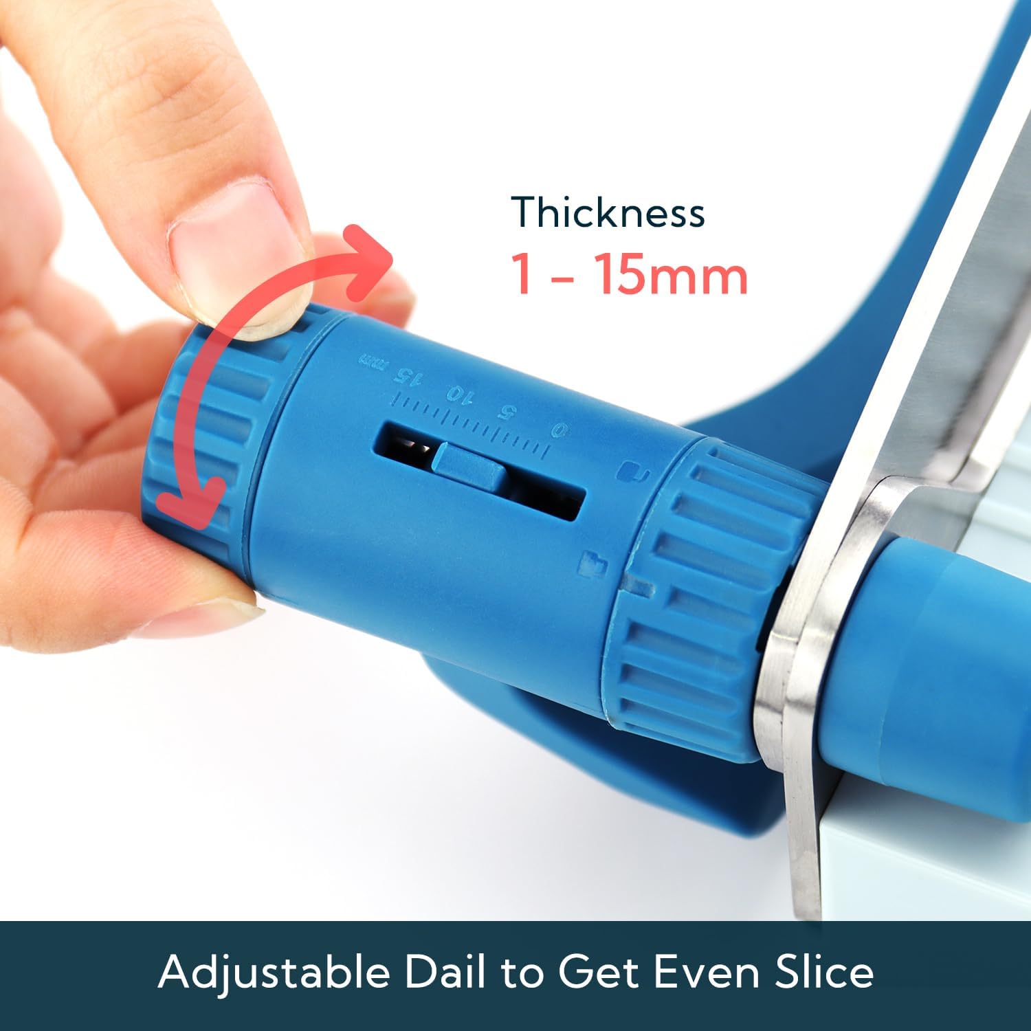 - Adjustable Dial to Get Even Slice: Easy to adjust thickness of the slice. By turning the dial you can get the exact thickness from 1-15 mm
